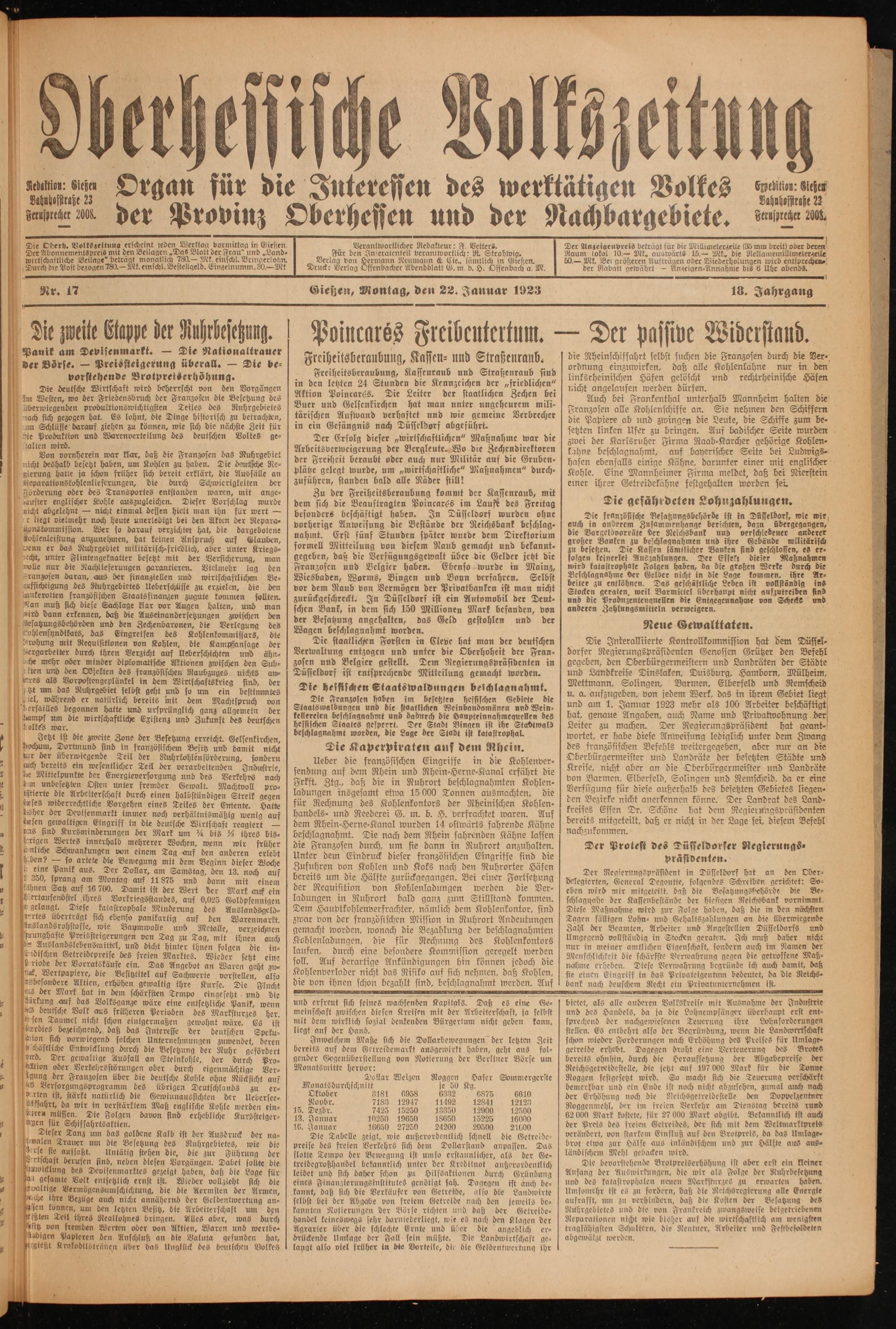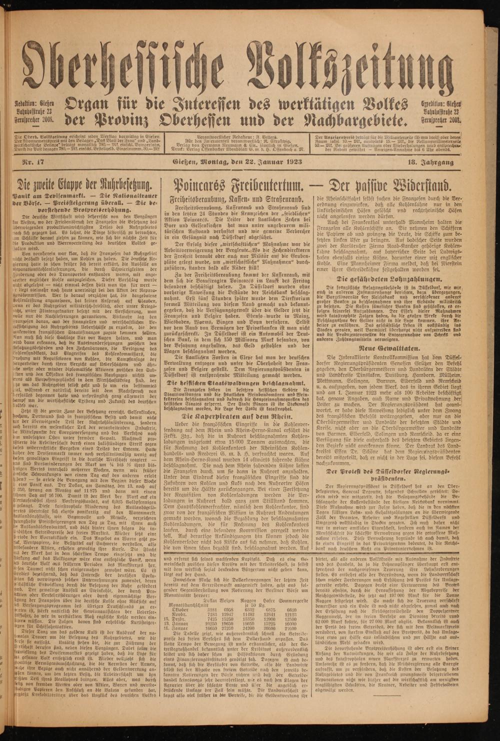 Oberhessische Volkszeitung. 1914-1923