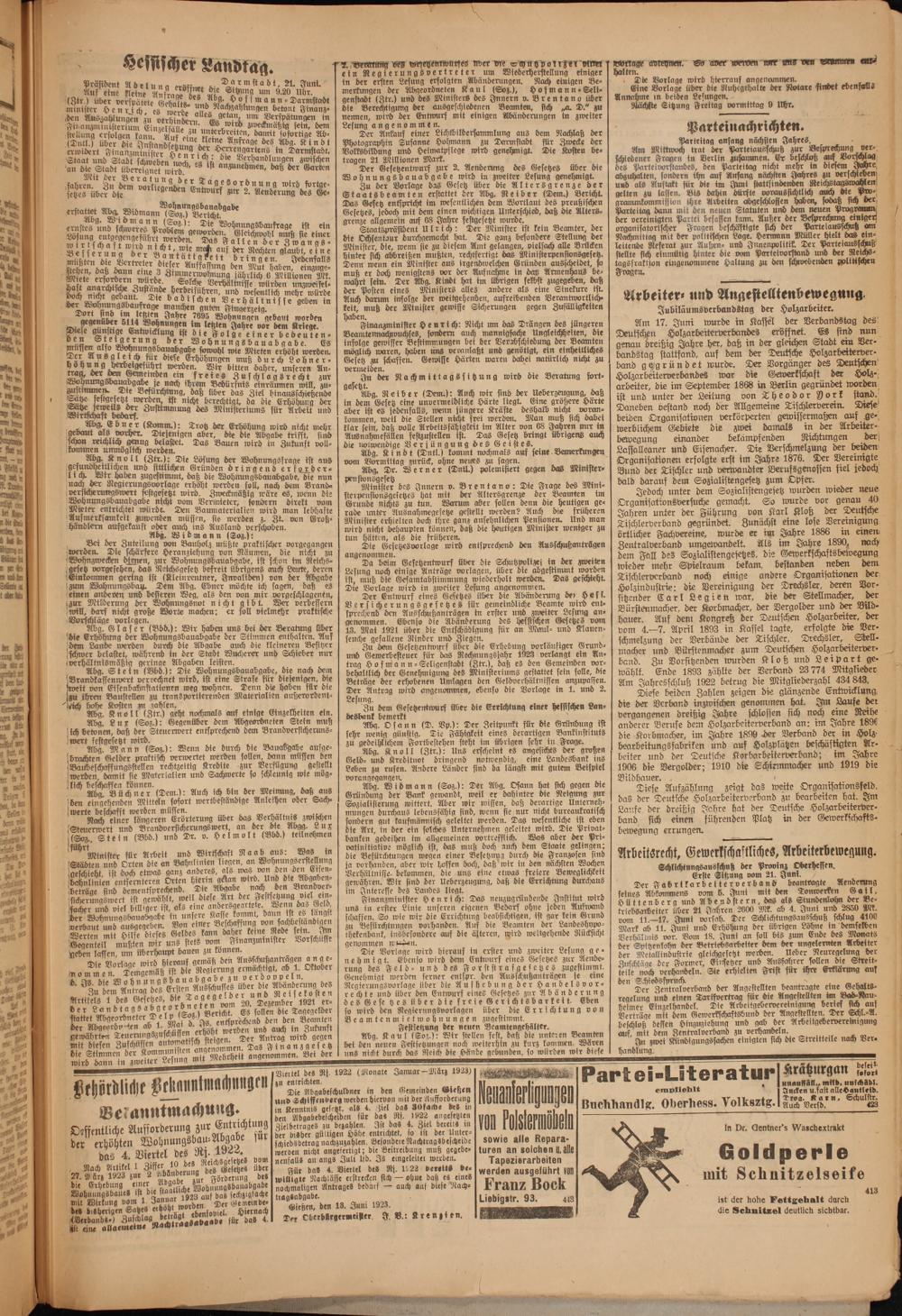 Oberhessische Volkszeitung. 1914-1923