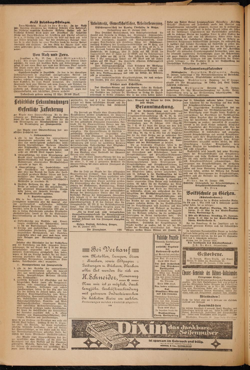 Oberhessische Volkszeitung. 1914-1923