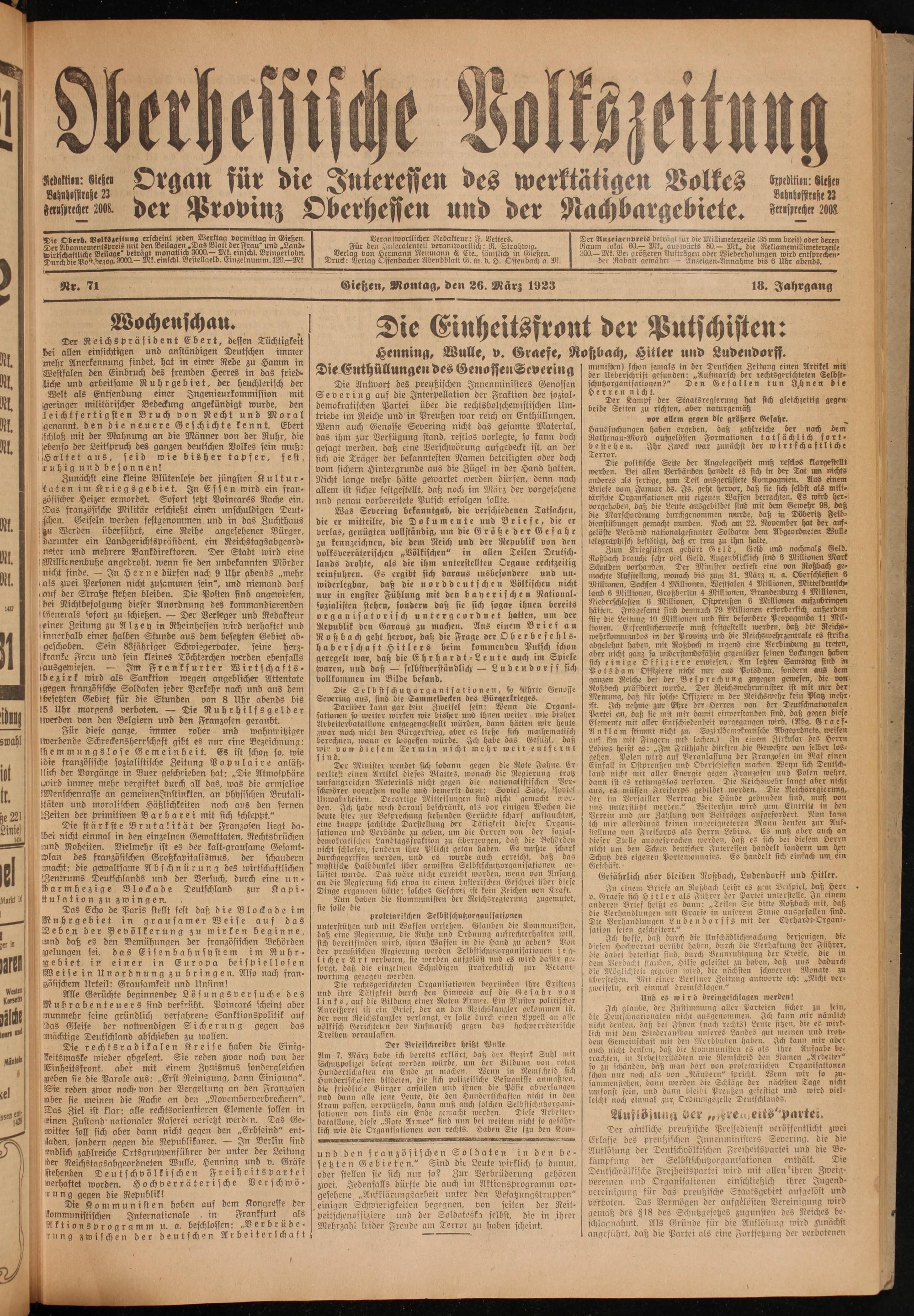 Oberhessische Volkszeitung. 1914-1923
