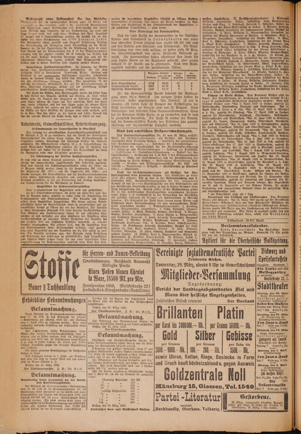 Oberhessische Volkszeitung. 1914-1923