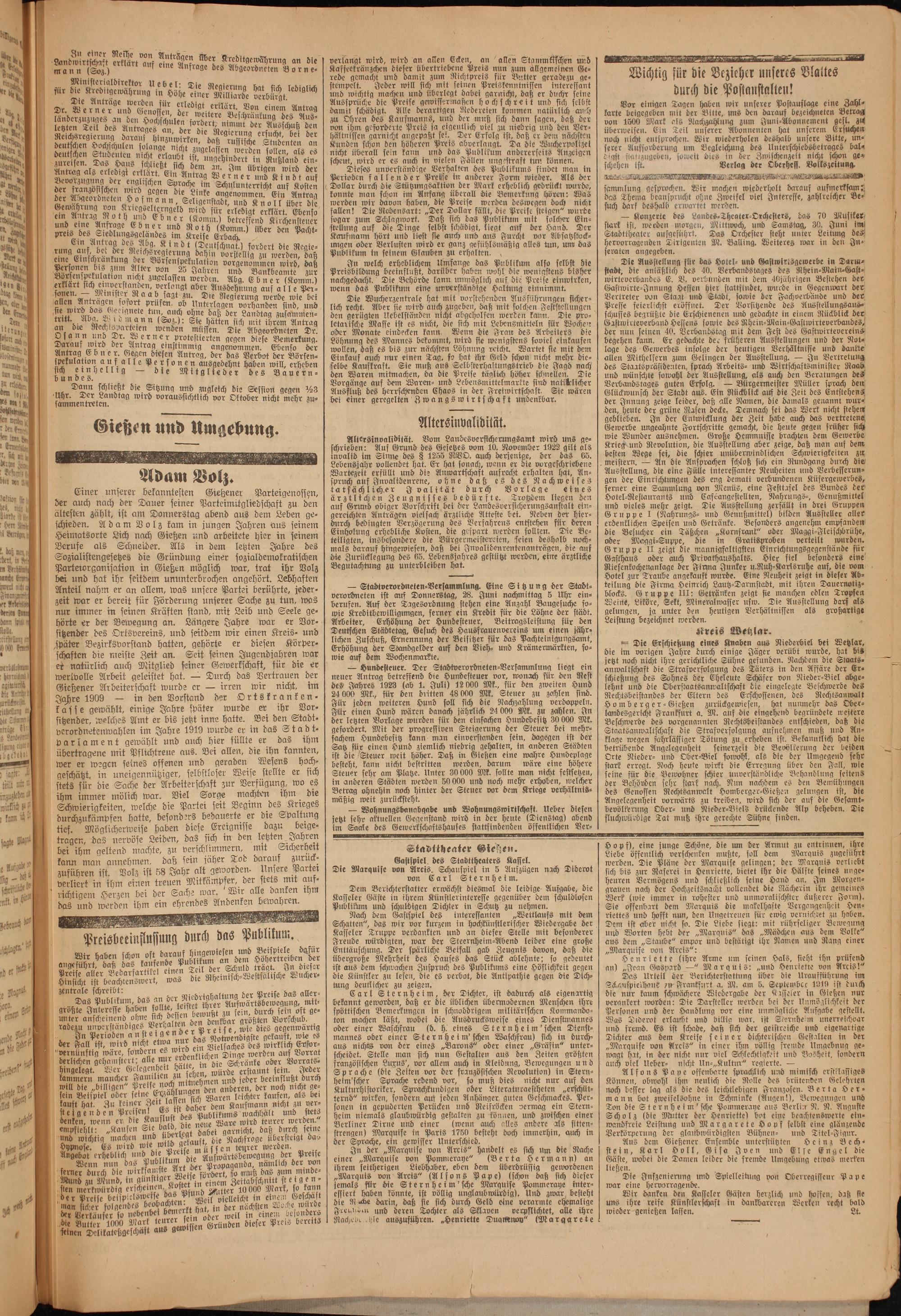 Oberhessische Volkszeitung. 1914-1923