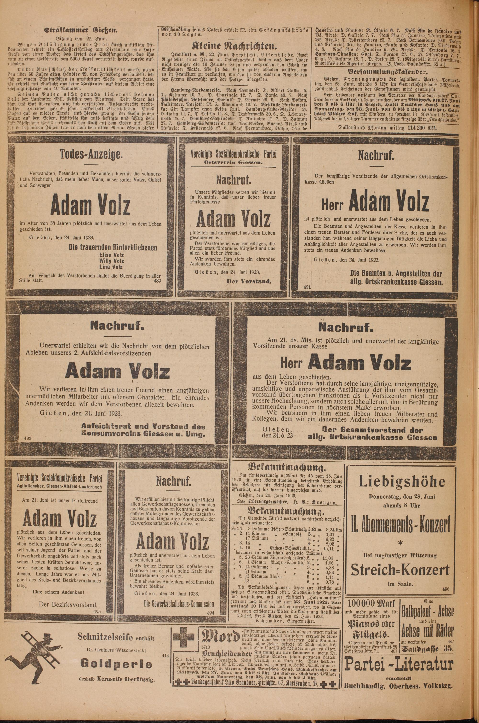 Oberhessische Volkszeitung. 1914-1923