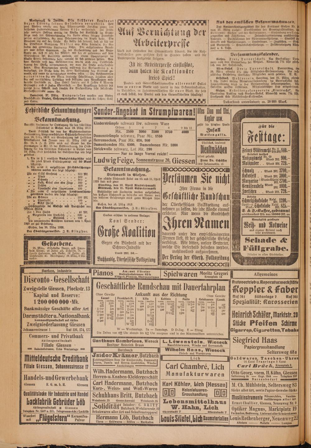 Oberhessische Volkszeitung. 1914-1923