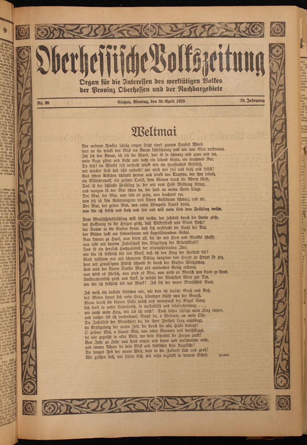 Oberhessische Volkszeitung. 1914-1923