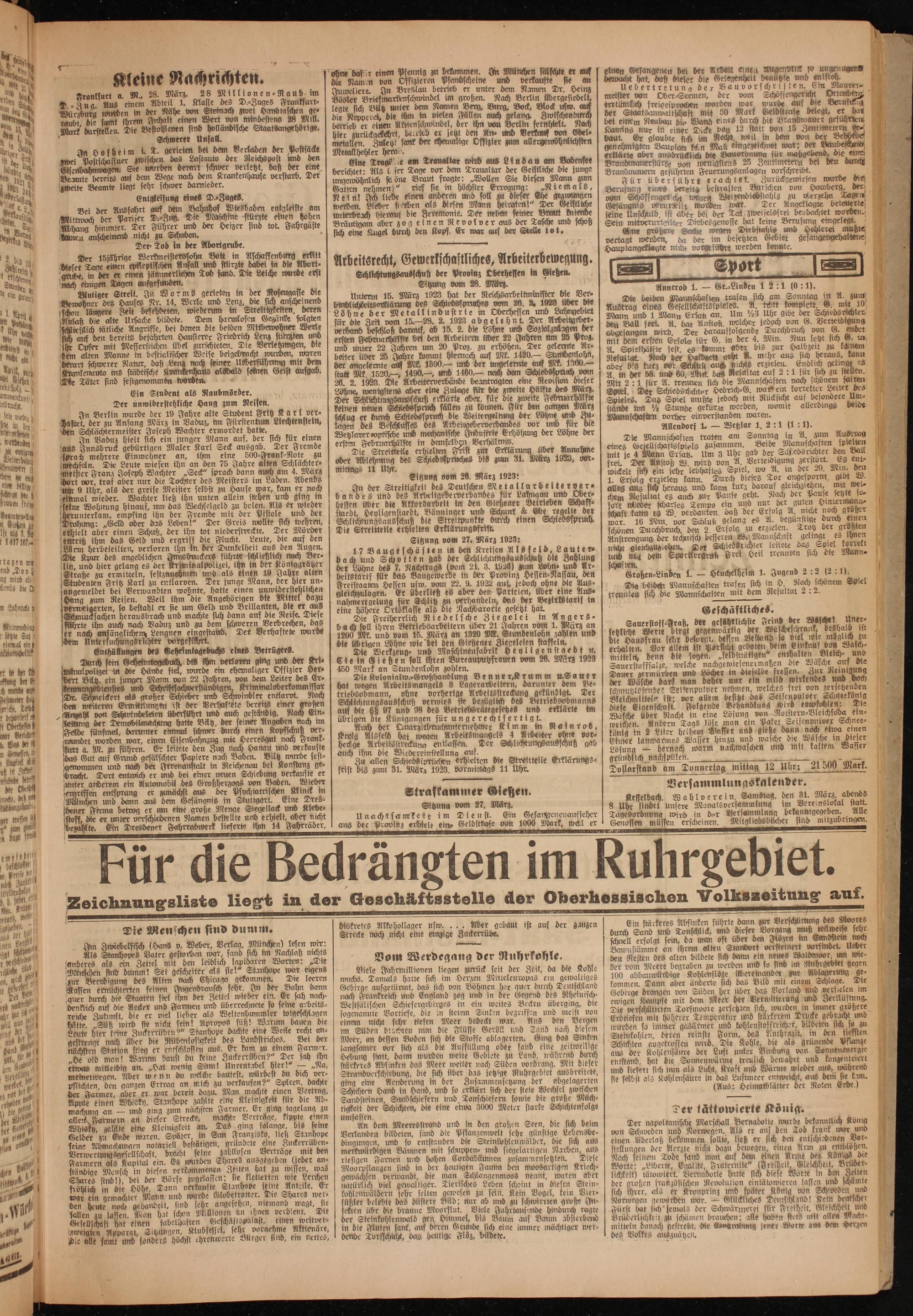 Oberhessische Volkszeitung. 1914-1923