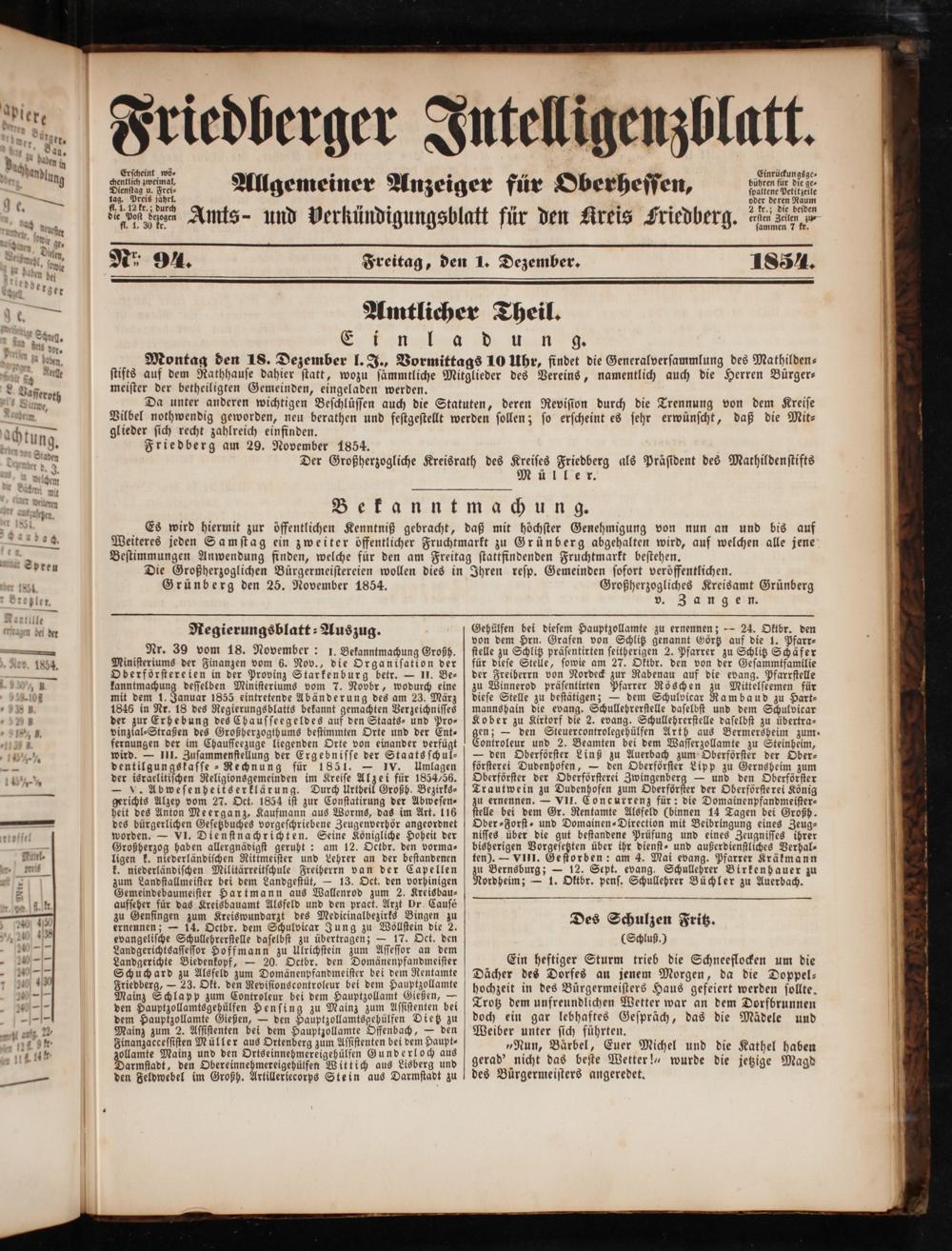 Friedberger Intelligenzblatt. 1854-1866