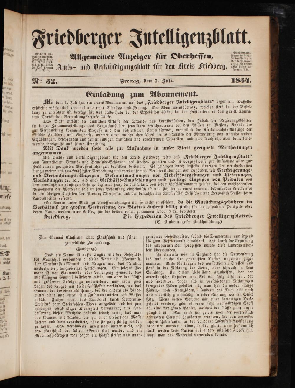 Friedberger Intelligenzblatt. 1854-1866