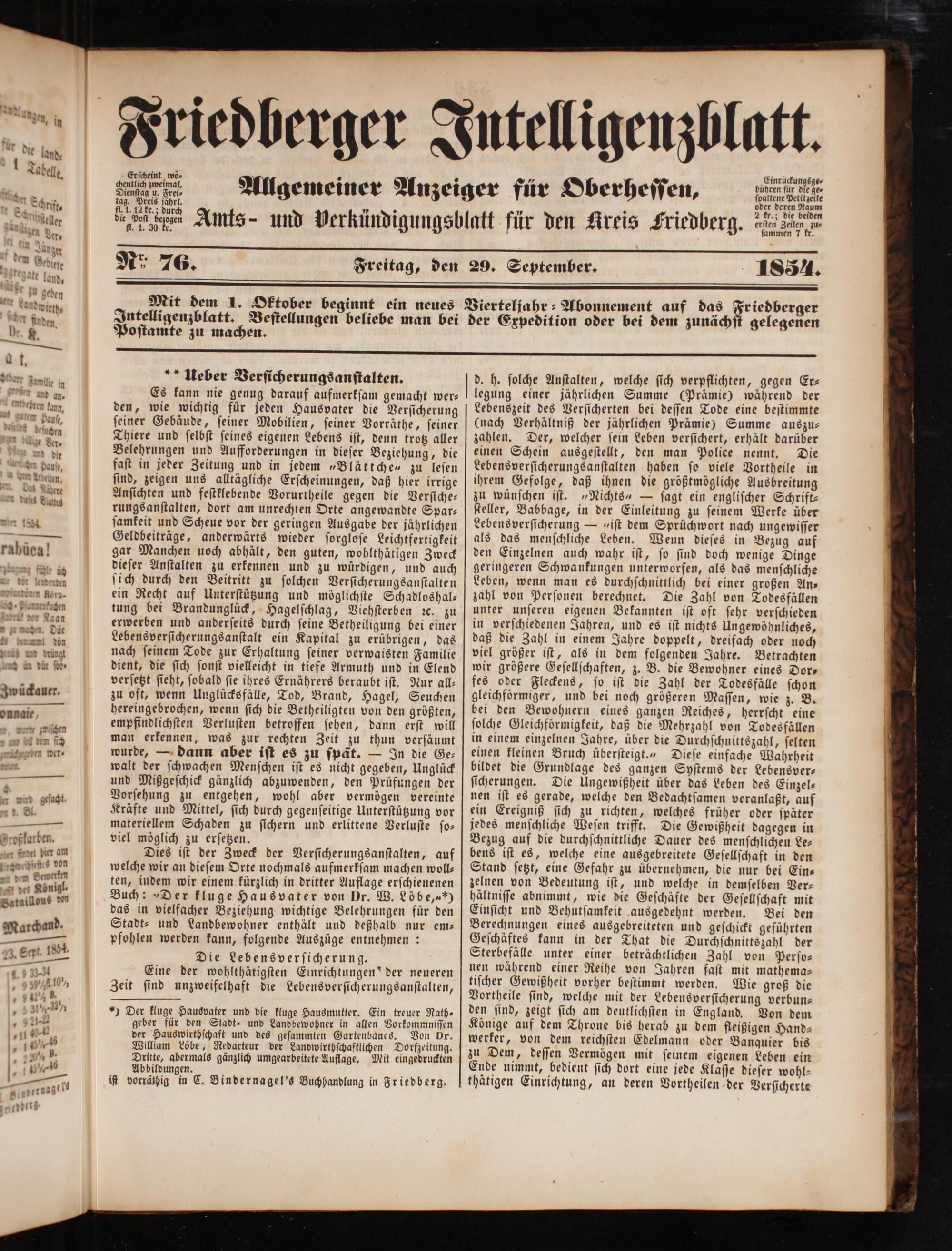 Friedberger Intelligenzblatt. 1854-1866