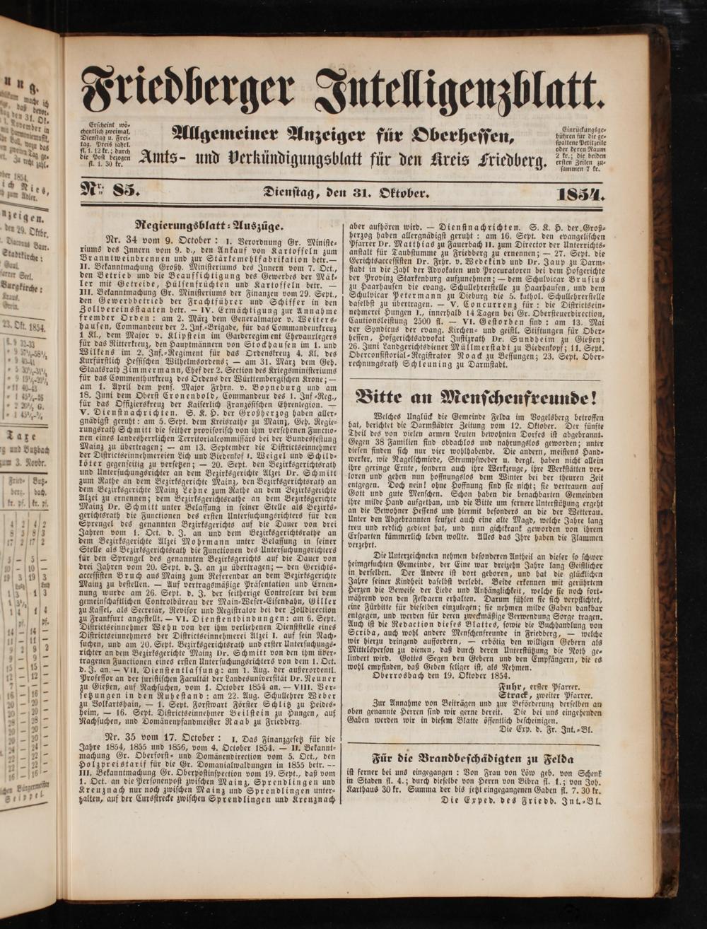 Friedberger Intelligenzblatt. 1854-1866