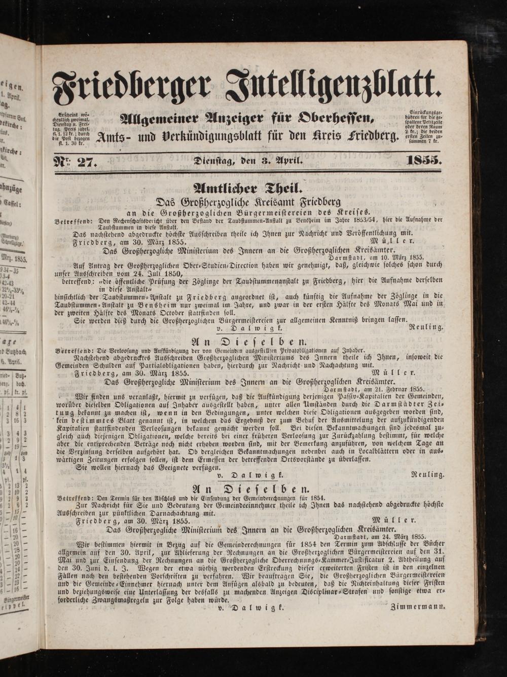 Friedberger Intelligenzblatt. 1854-1866