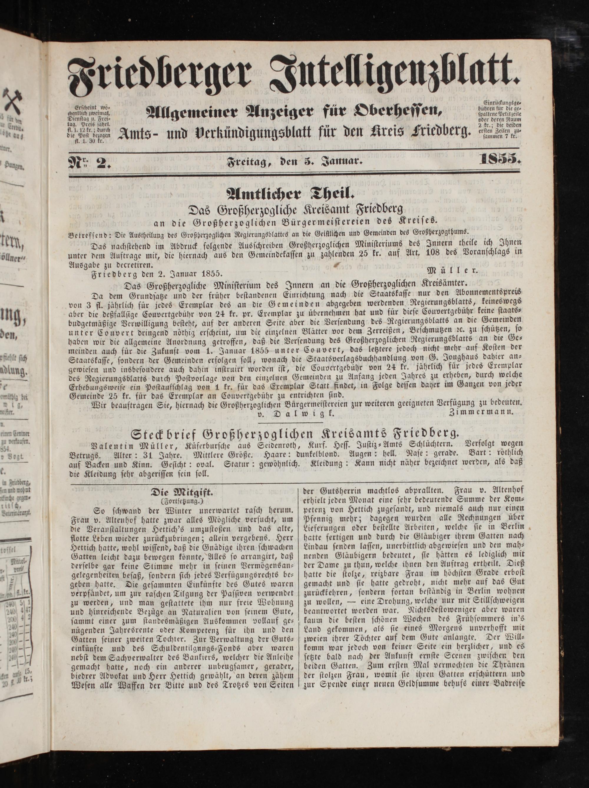 Friedberger Intelligenzblatt. 1854-1866