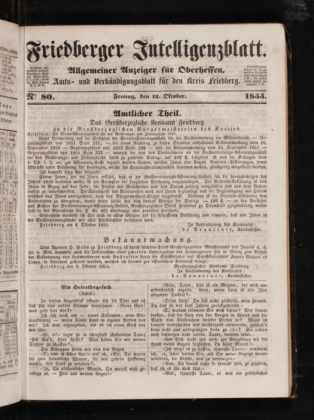 Friedberger Intelligenzblatt. 1854-1866