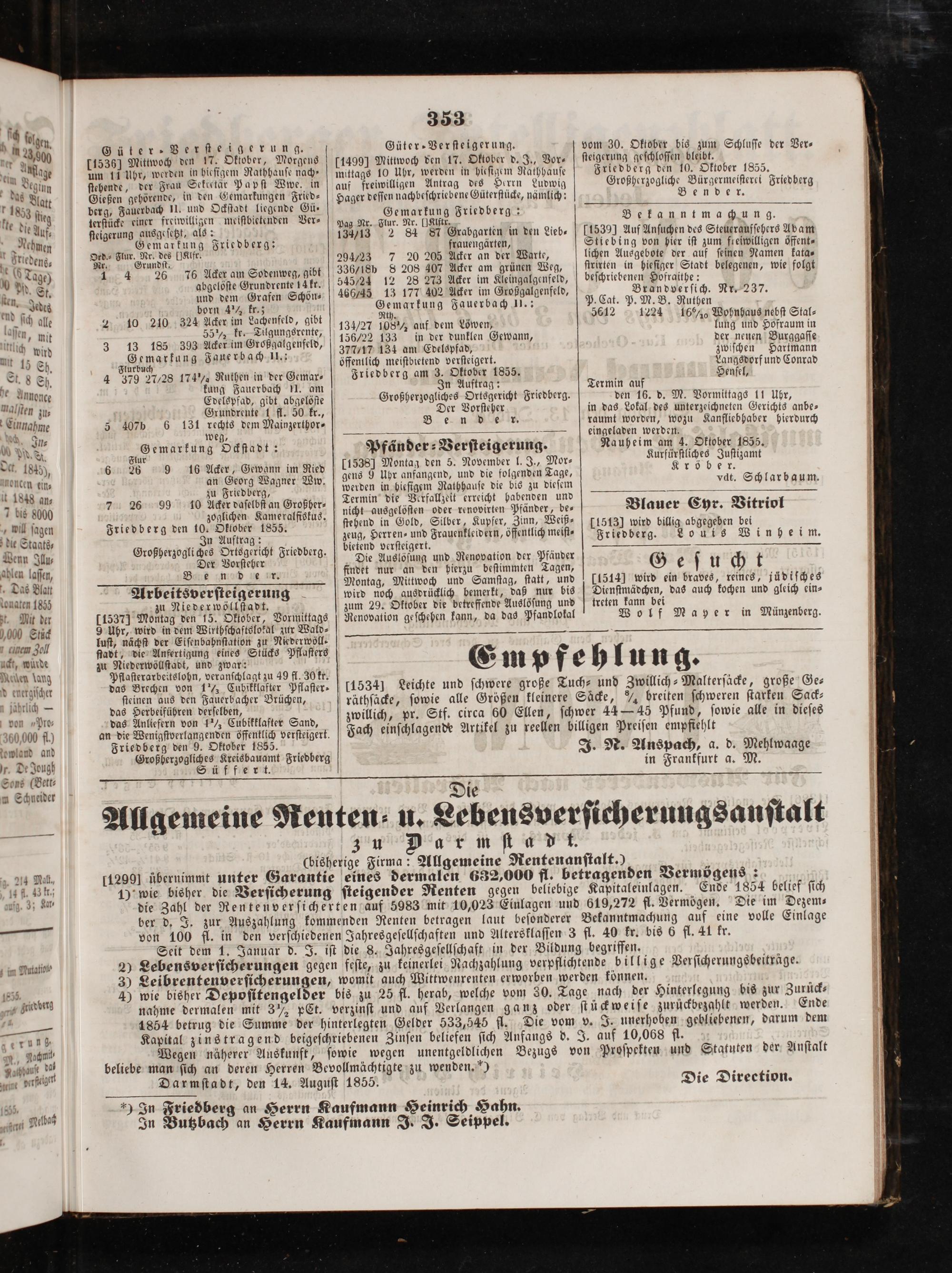 Friedberger Intelligenzblatt. 1854-1866