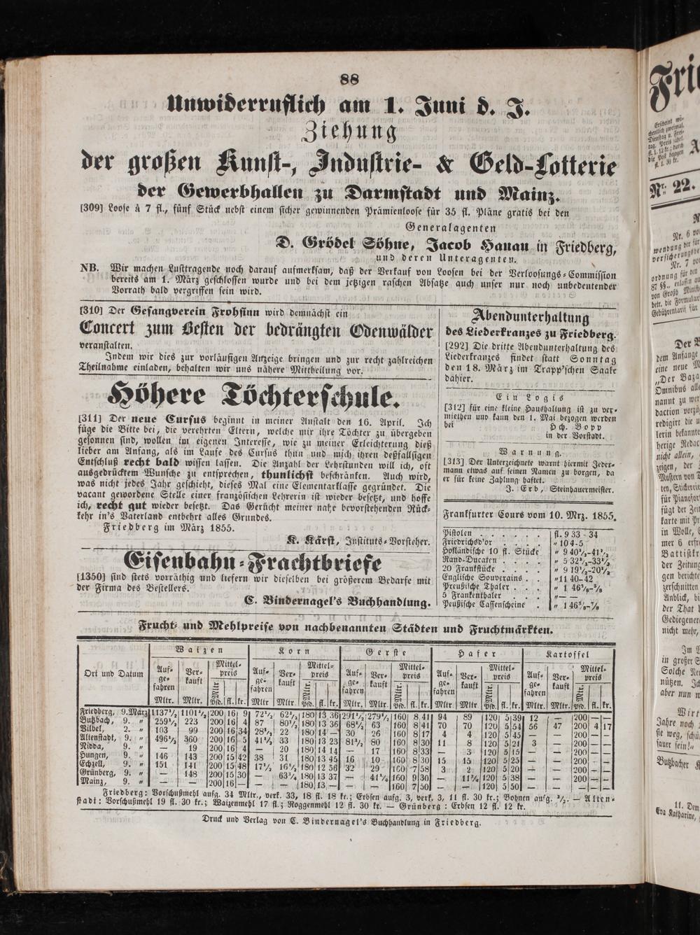 Friedberger Intelligenzblatt. 1854-1866