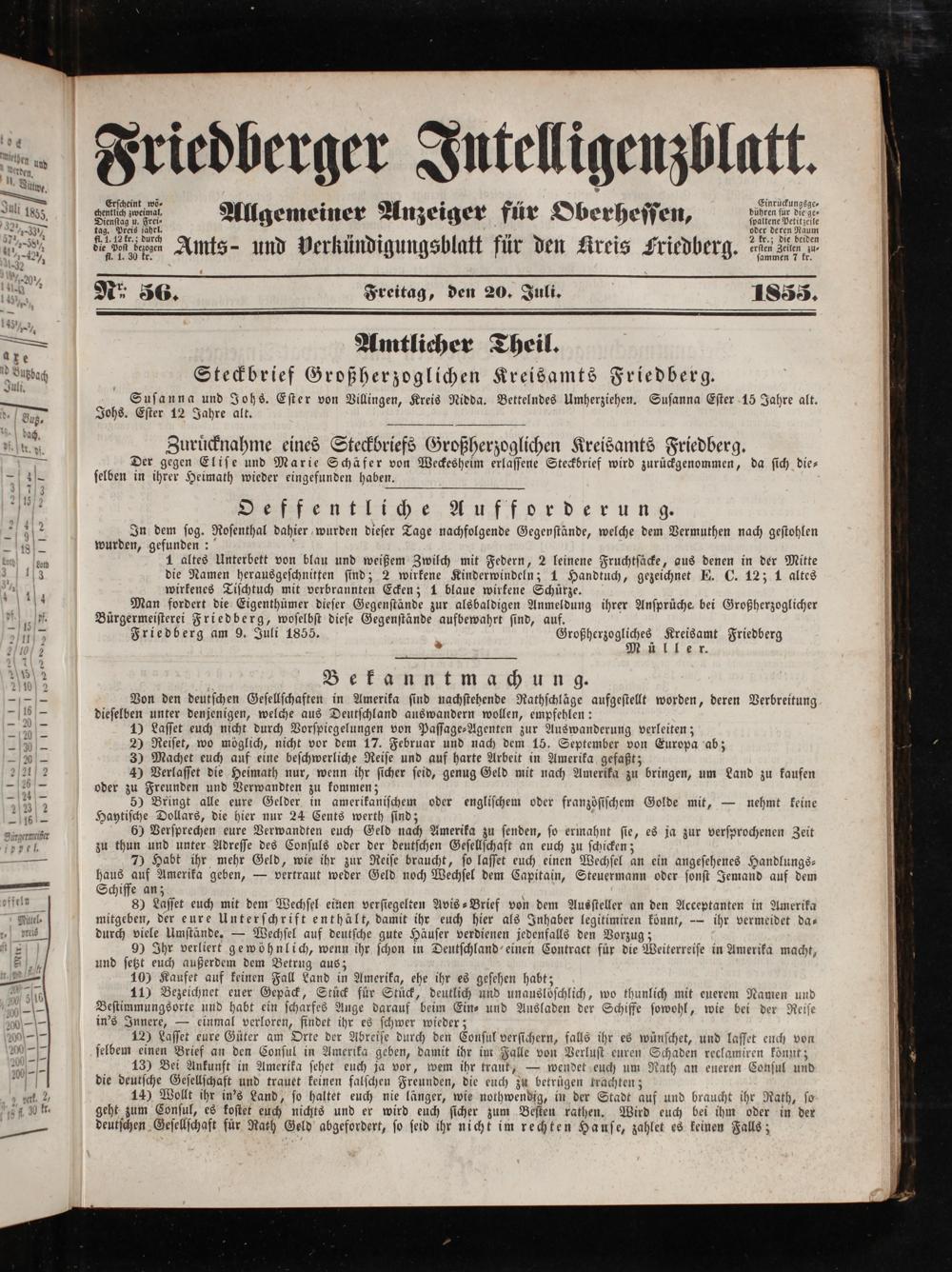 Friedberger Intelligenzblatt. 1854-1866