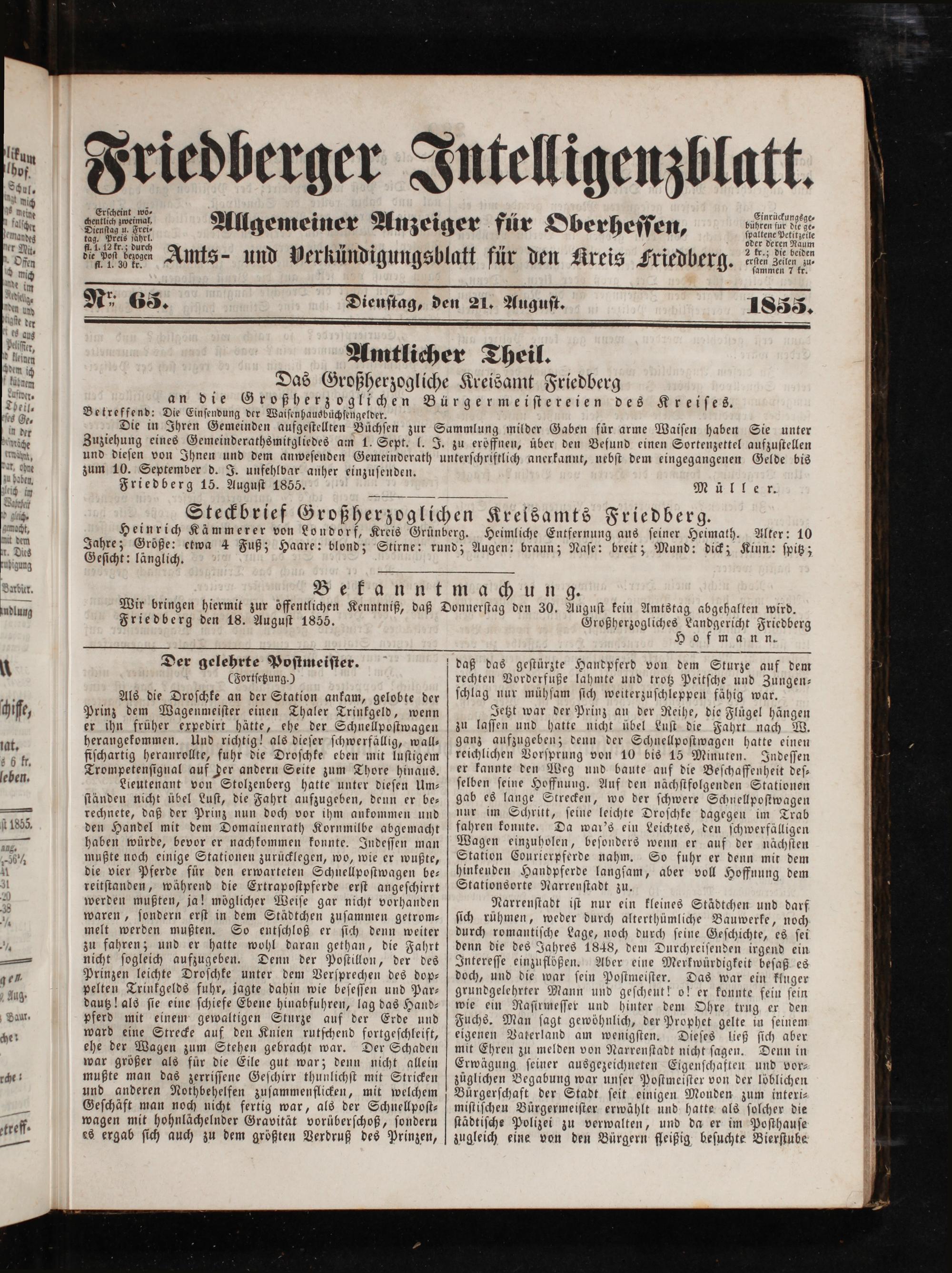 Friedberger Intelligenzblatt. 1854-1866