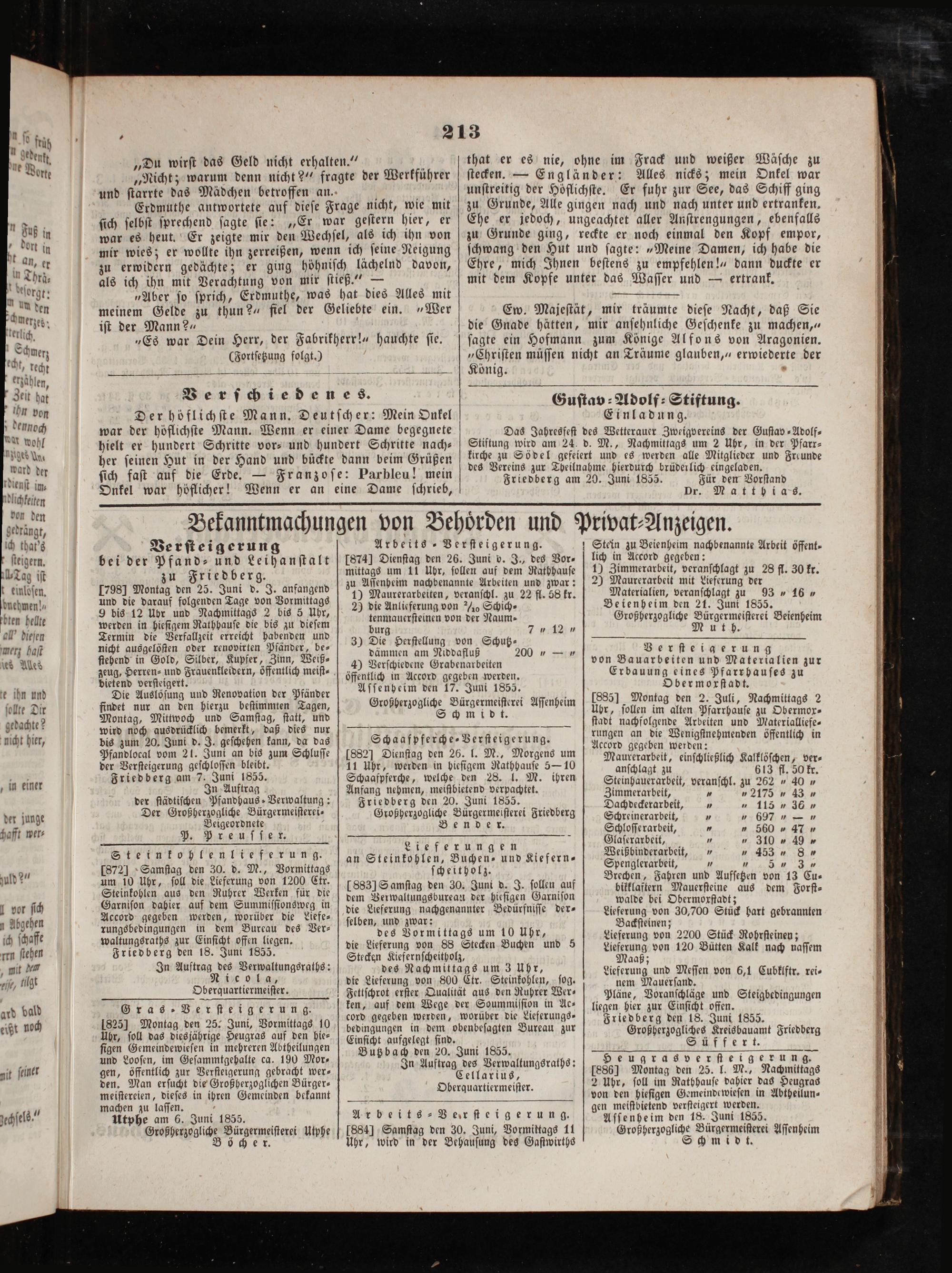 Friedberger Intelligenzblatt. 1854-1866