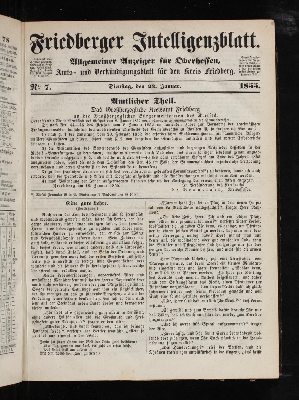 Friedberger Intelligenzblatt. 1854-1866
