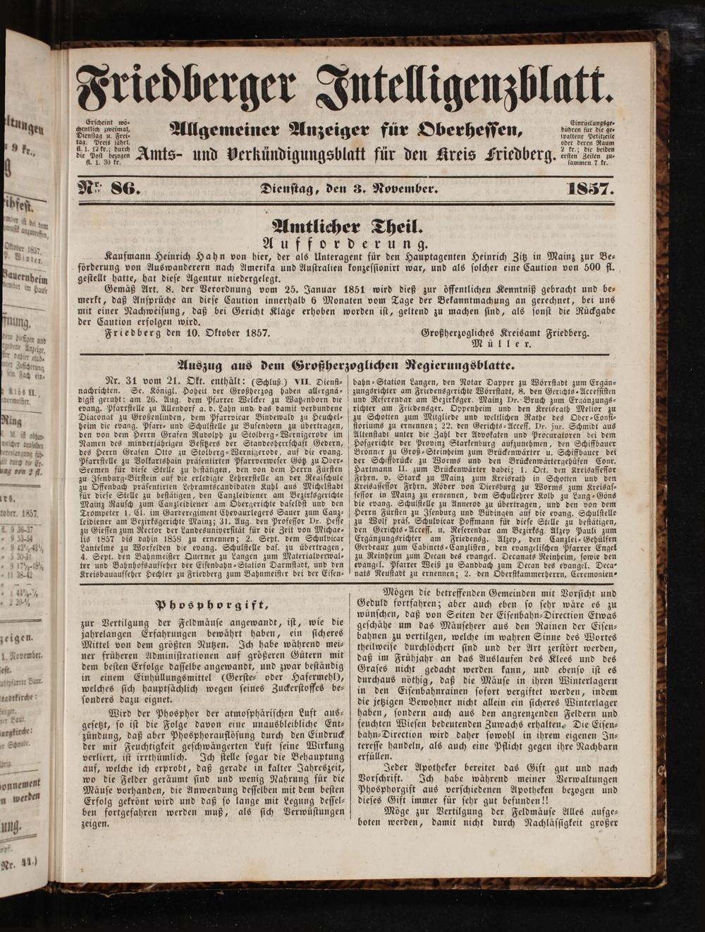 Friedberger Intelligenzblatt. 1854-1866