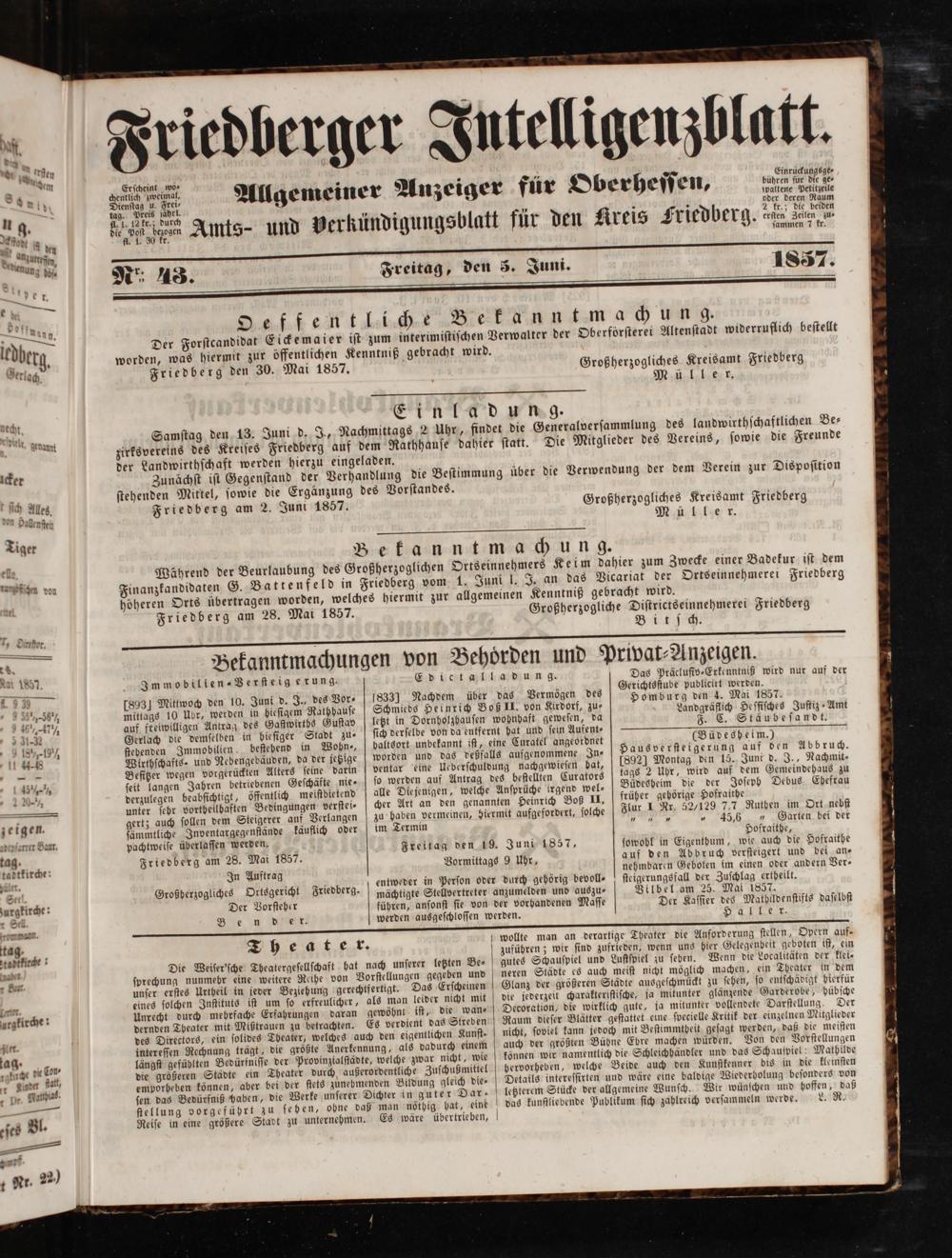 Friedberger Intelligenzblatt. 1854-1866