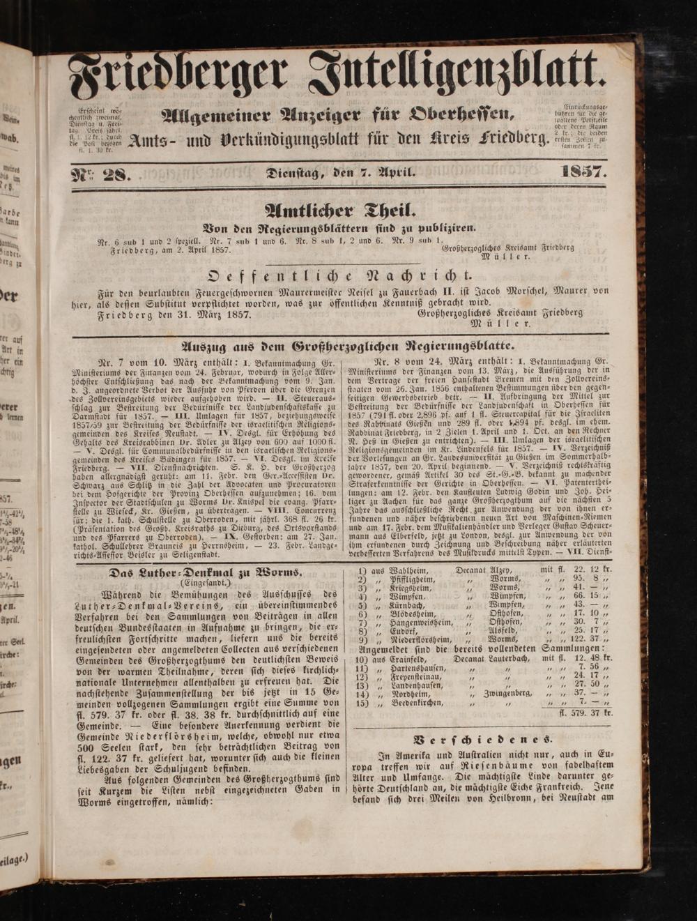 Friedberger Intelligenzblatt. 1854-1866