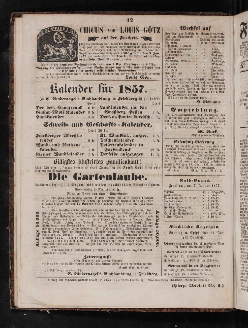 Friedberger Intelligenzblatt. 1854-1866