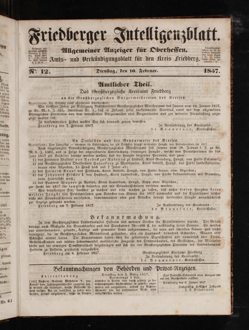 Friedberger Intelligenzblatt. 1854-1866
