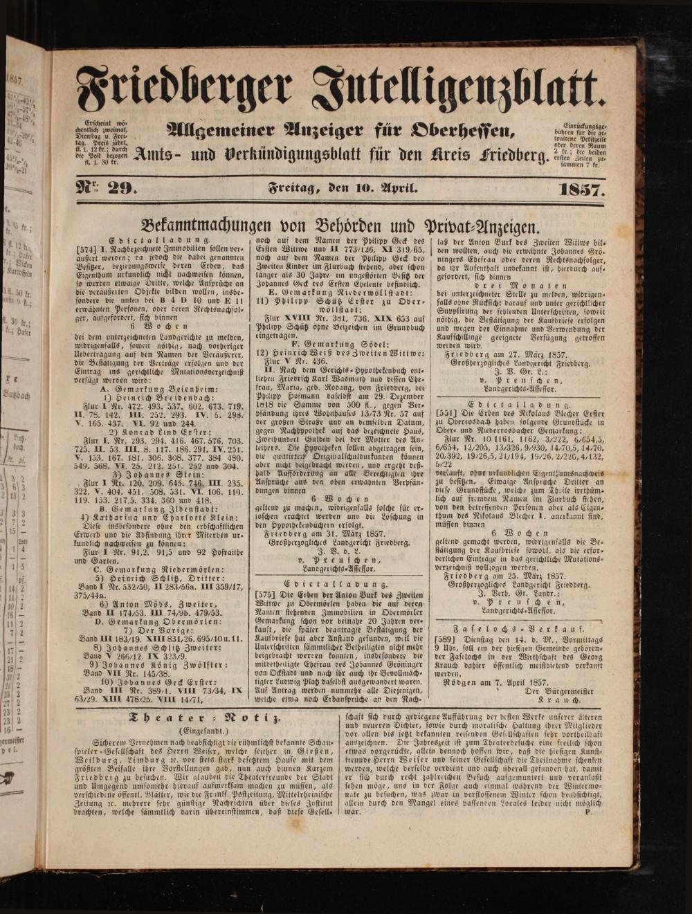 Friedberger Intelligenzblatt. 1854-1866