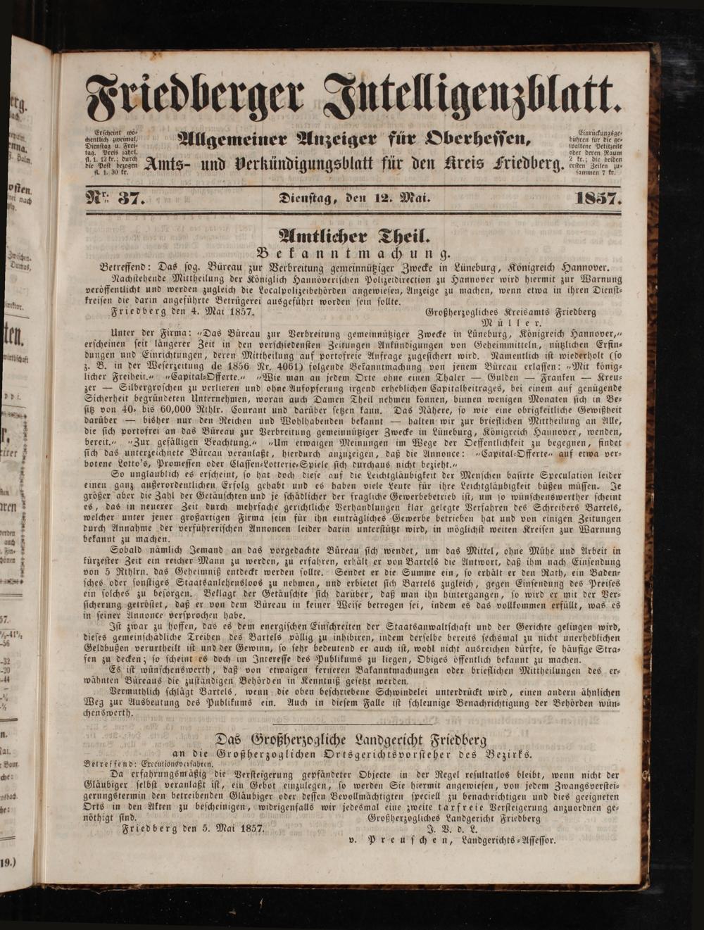 Friedberger Intelligenzblatt. 1854-1866