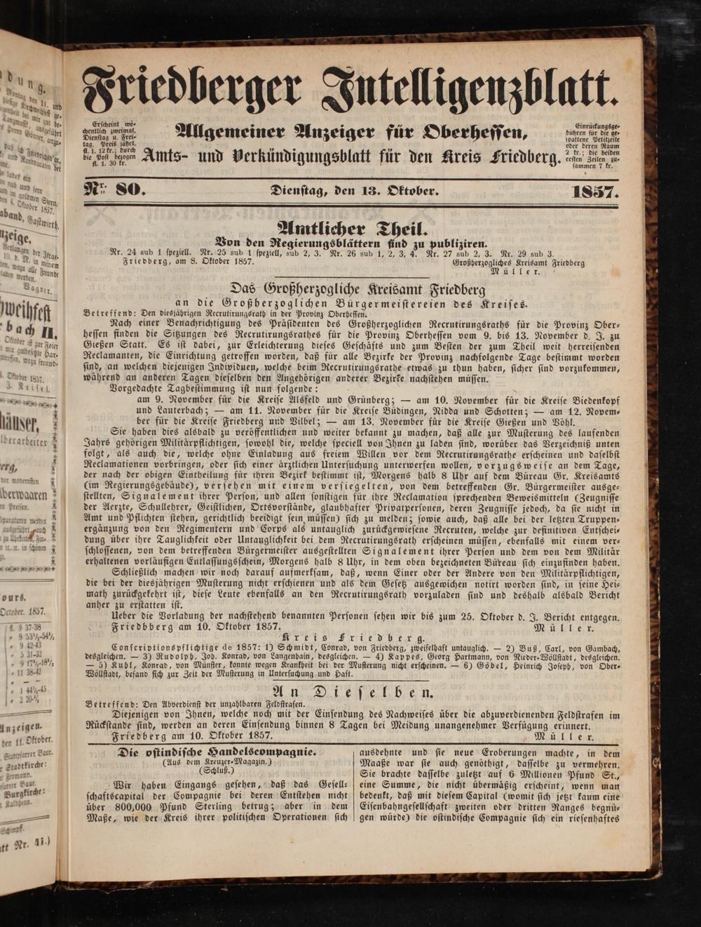 Friedberger Intelligenzblatt. 1854-1866