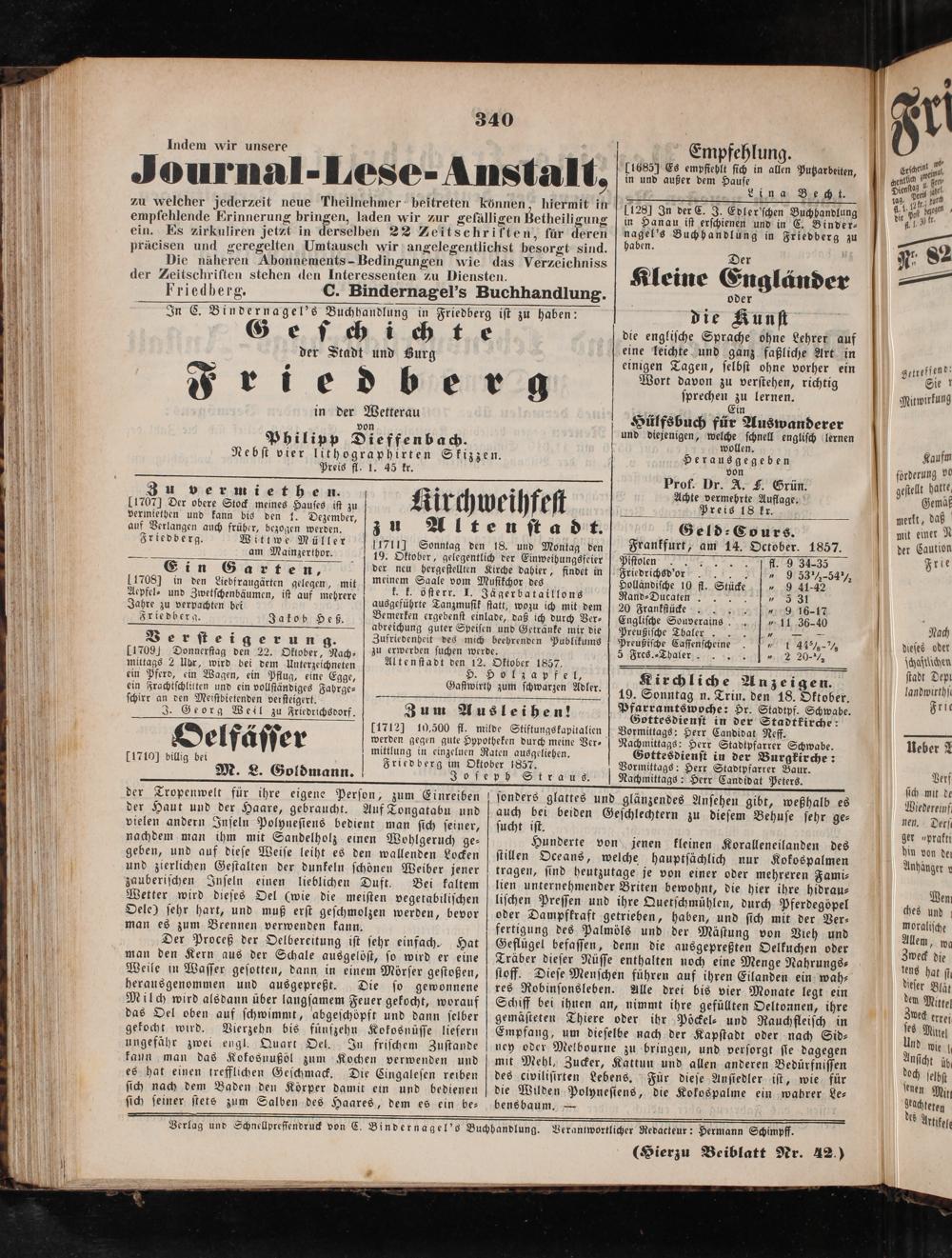Friedberger Intelligenzblatt. 1854-1866