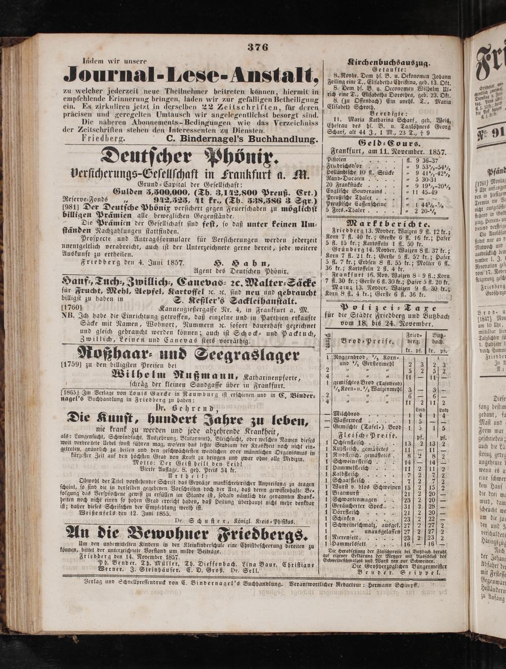 Friedberger Intelligenzblatt. 1854-1866