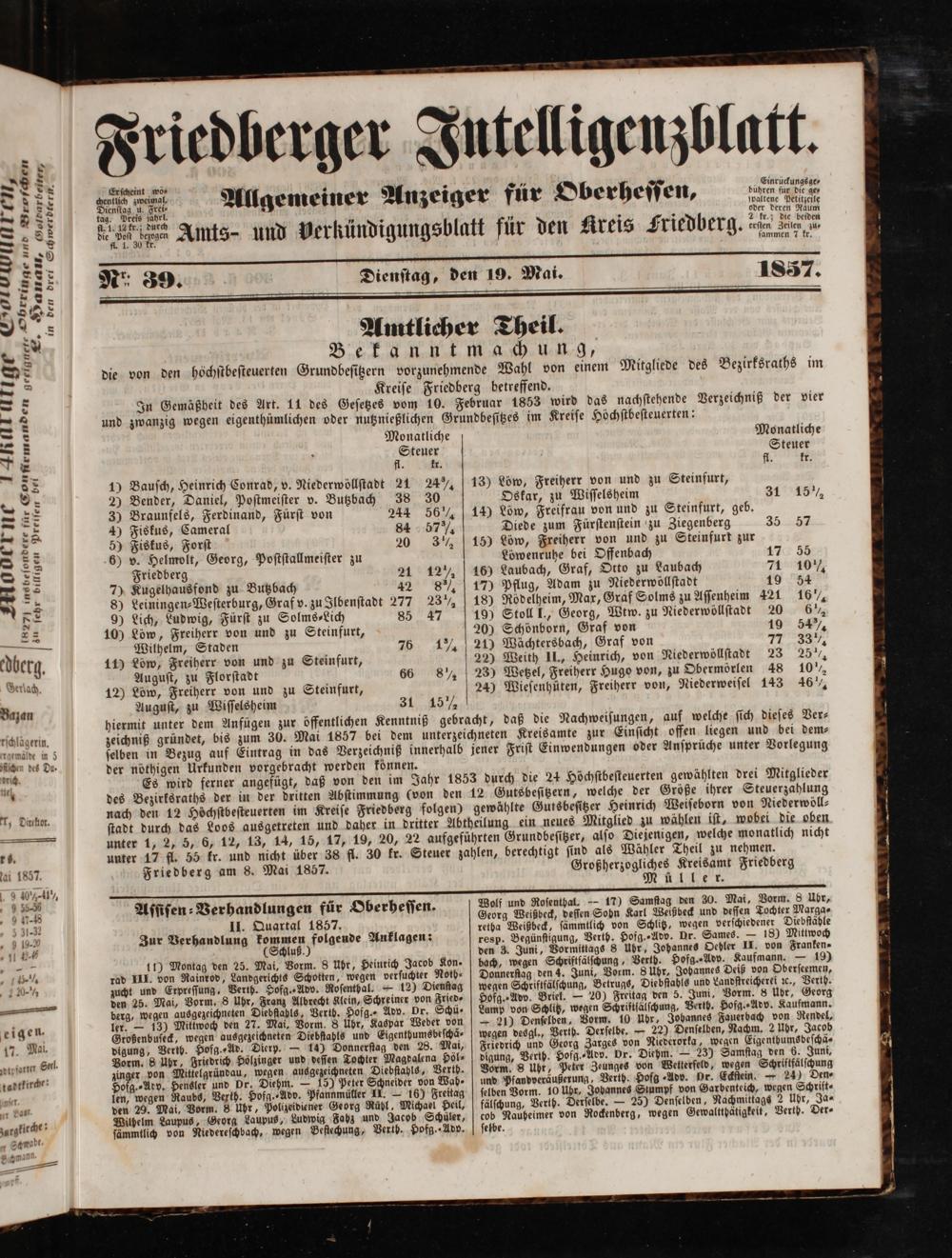 Friedberger Intelligenzblatt. 1854-1866