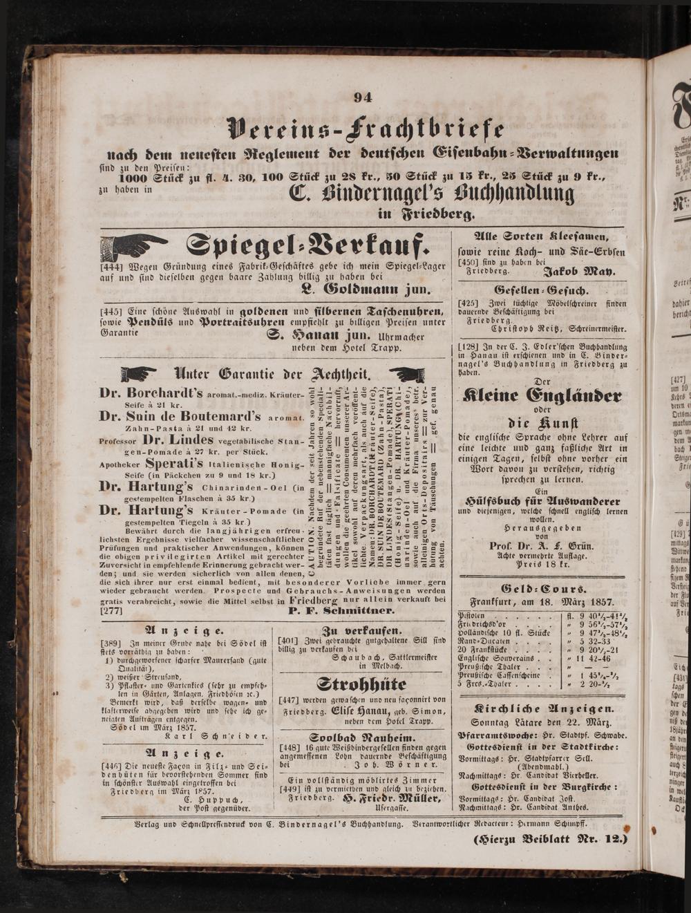 Friedberger Intelligenzblatt. 1854-1866