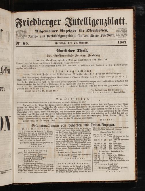 Friedberger Intelligenzblatt. 1854-1866