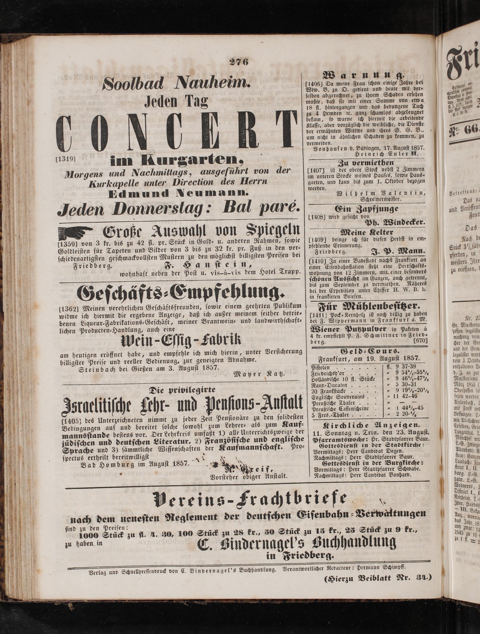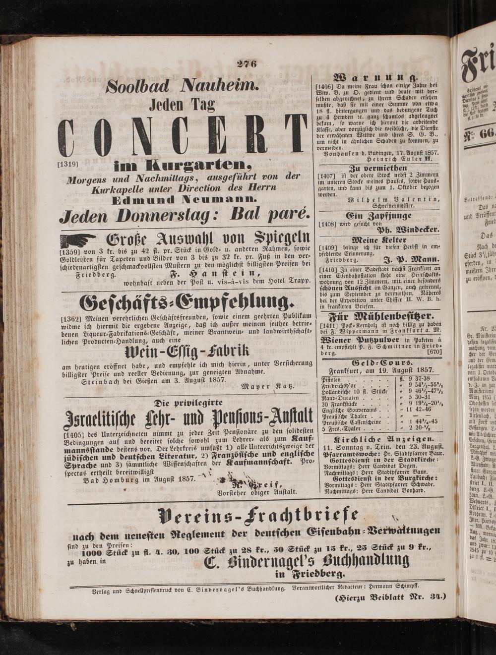Friedberger Intelligenzblatt. 1854-1866