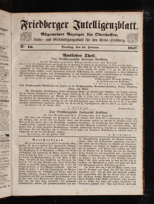 Friedberger Intelligenzblatt. 1854-1866