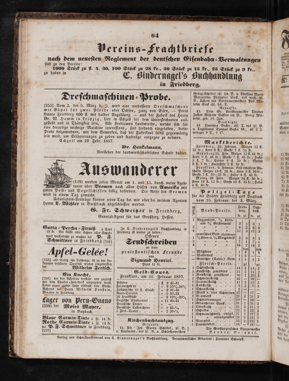 Friedberger Intelligenzblatt. 1854-1866