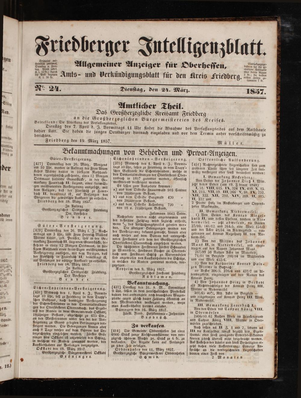 Friedberger Intelligenzblatt. 1854-1866