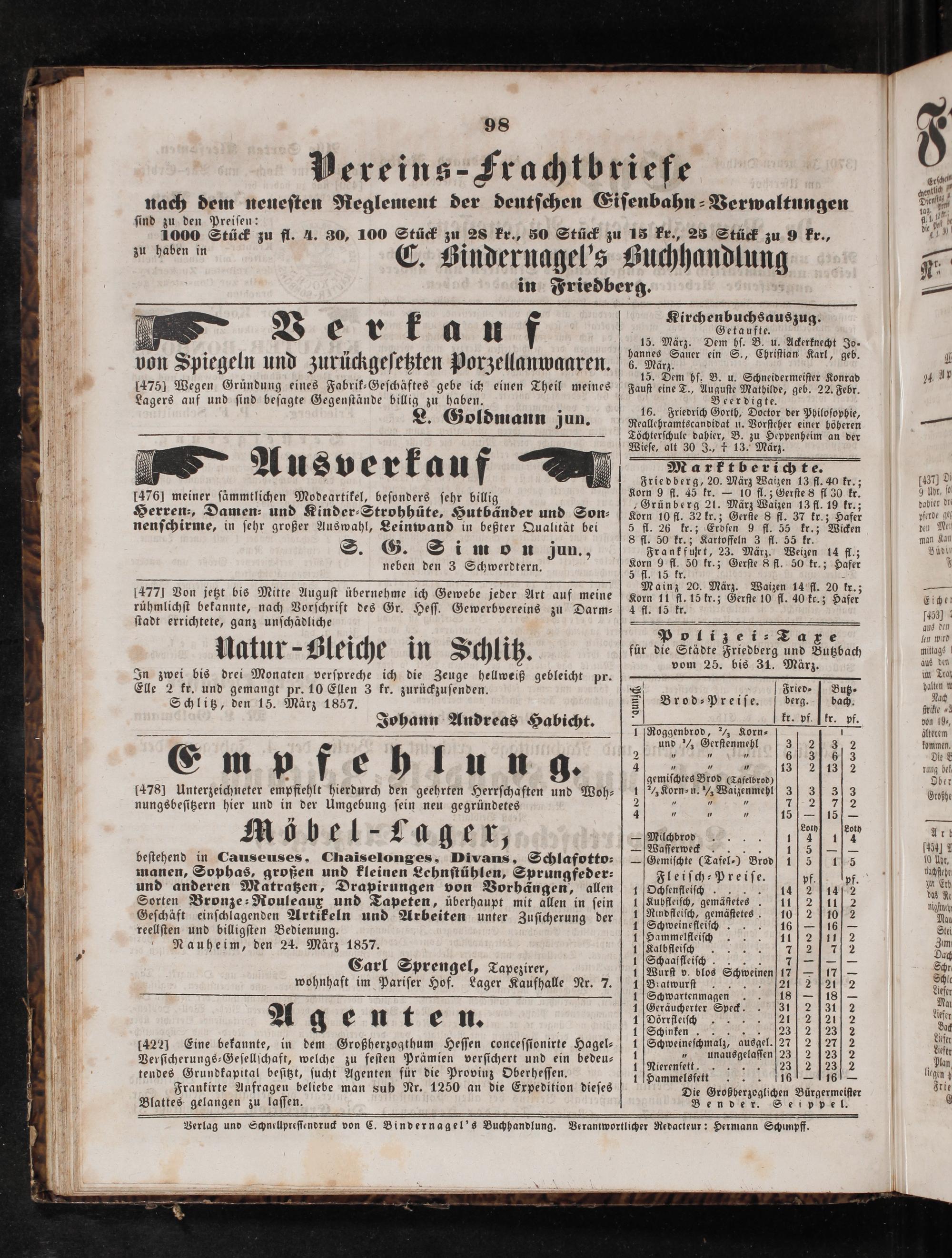 Friedberger Intelligenzblatt. 1854-1866