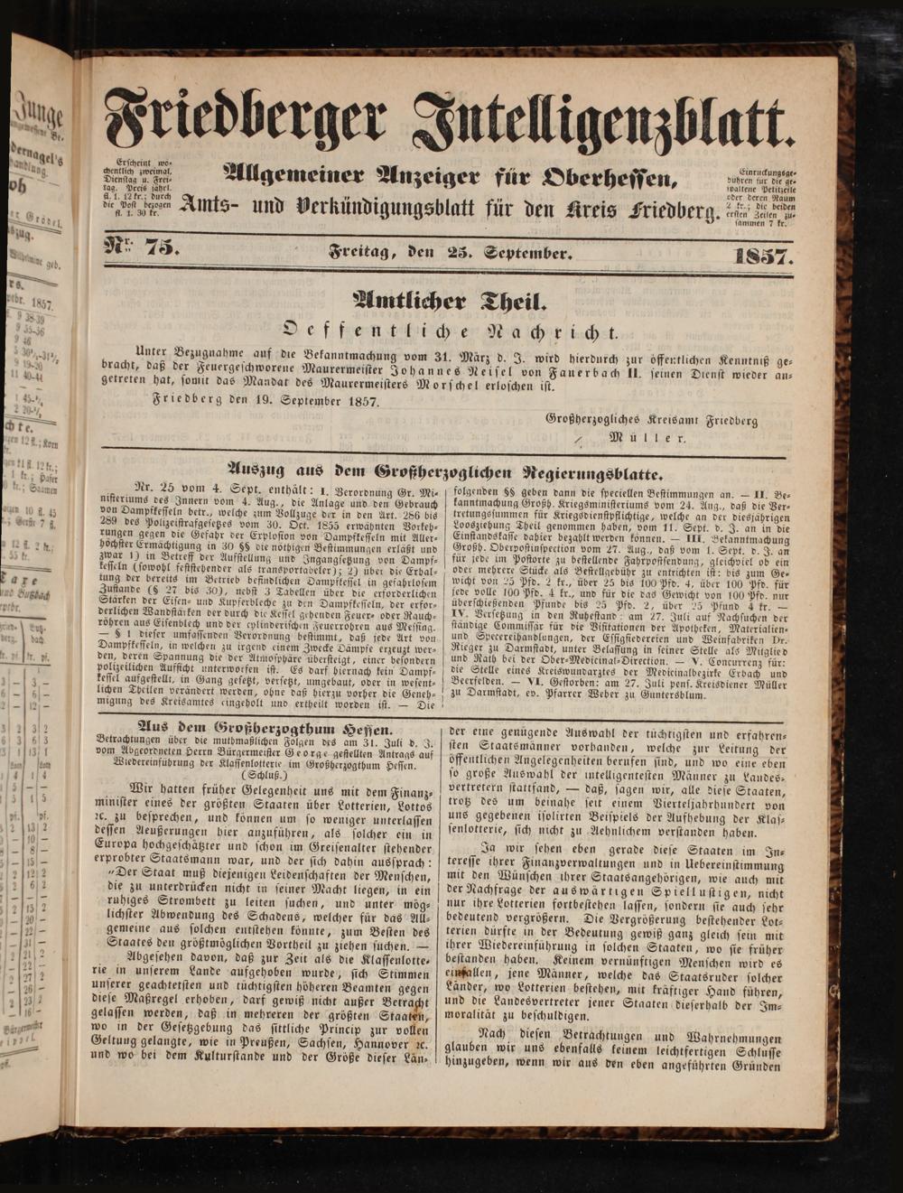 Friedberger Intelligenzblatt. 1854-1866