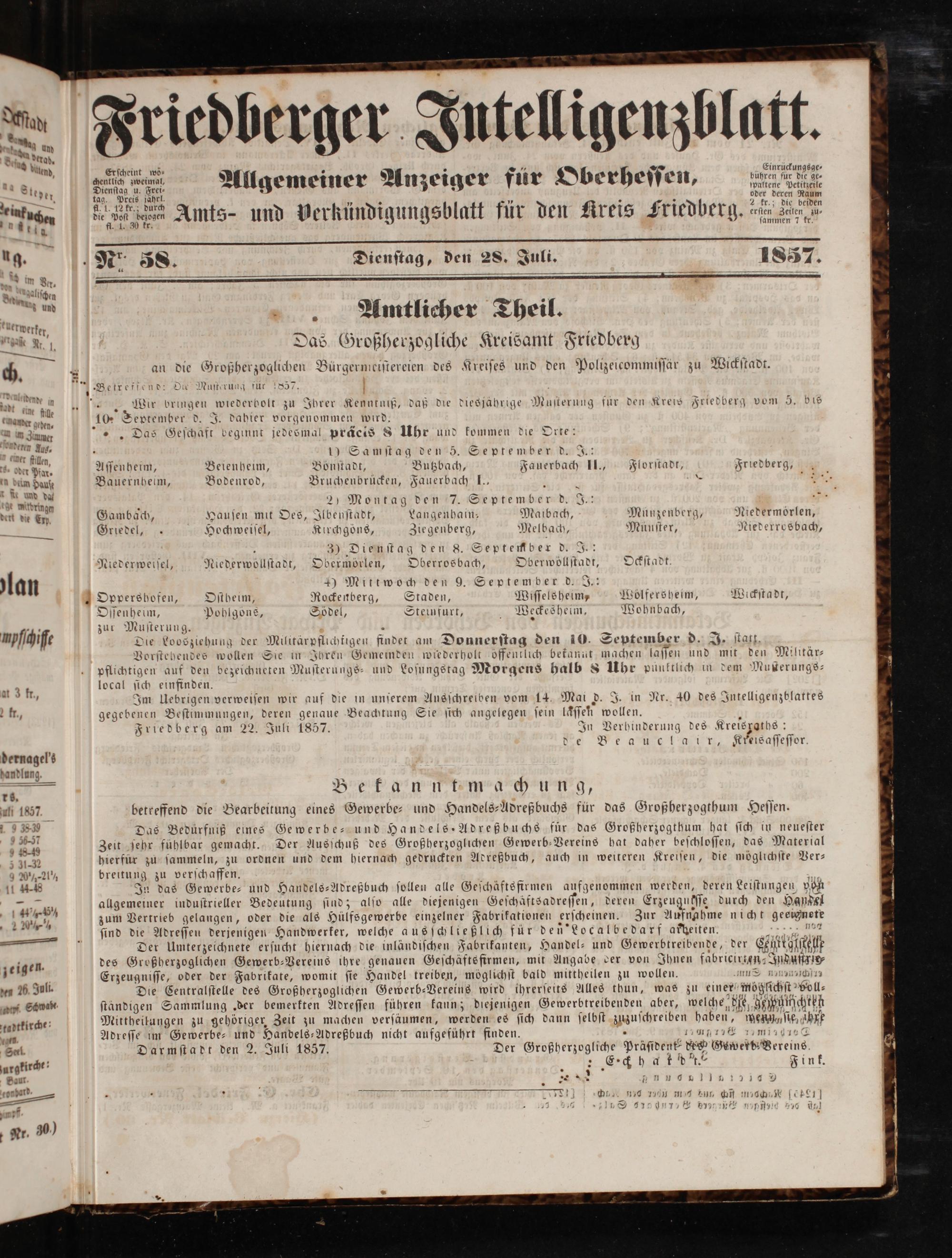 Friedberger Intelligenzblatt. 1854-1866