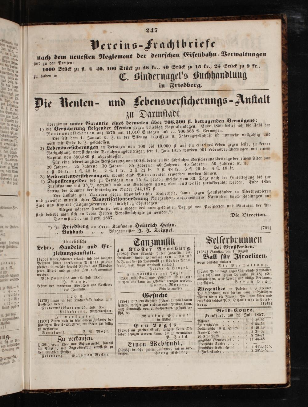 Friedberger Intelligenzblatt. 1854-1866