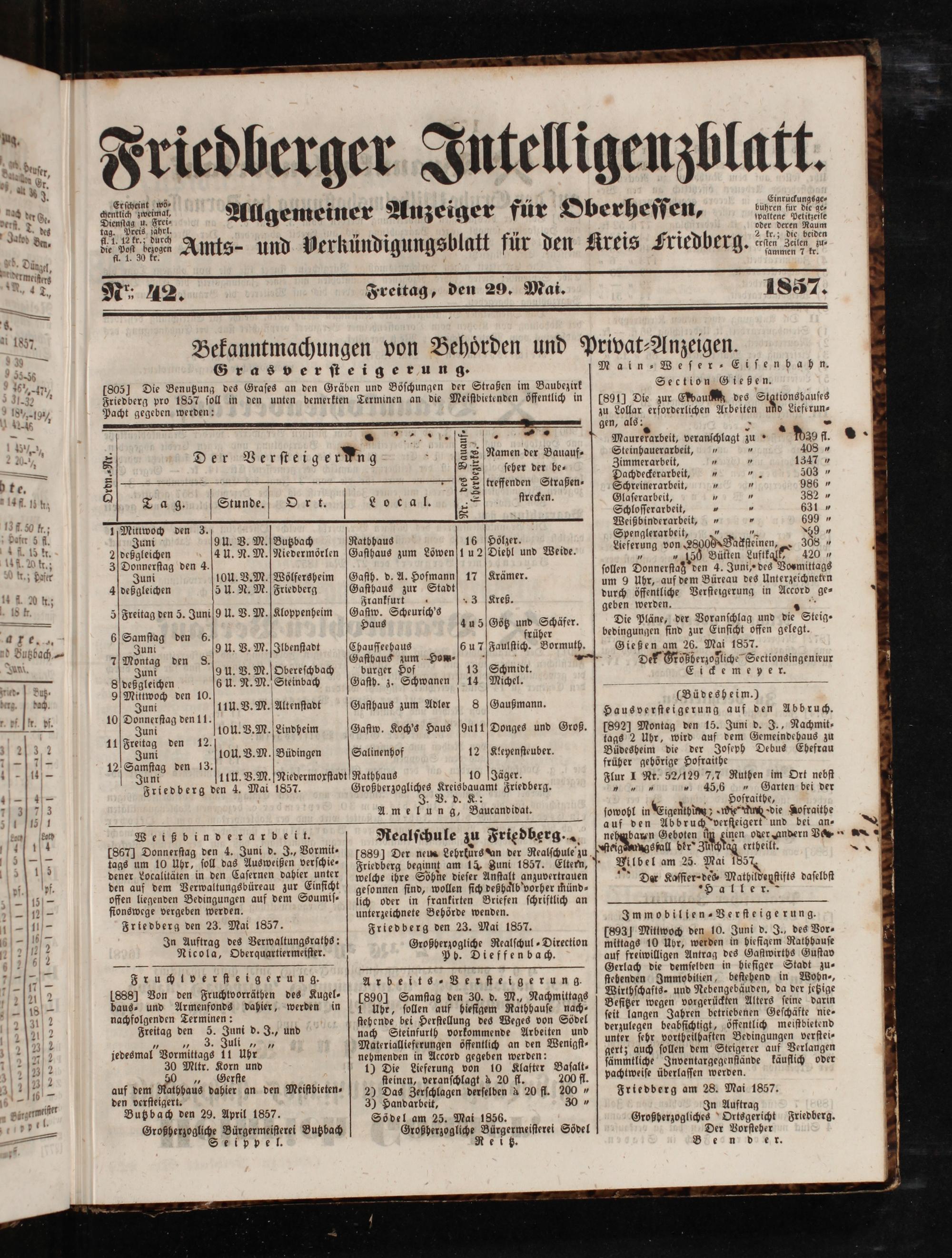 Friedberger Intelligenzblatt. 1854-1866