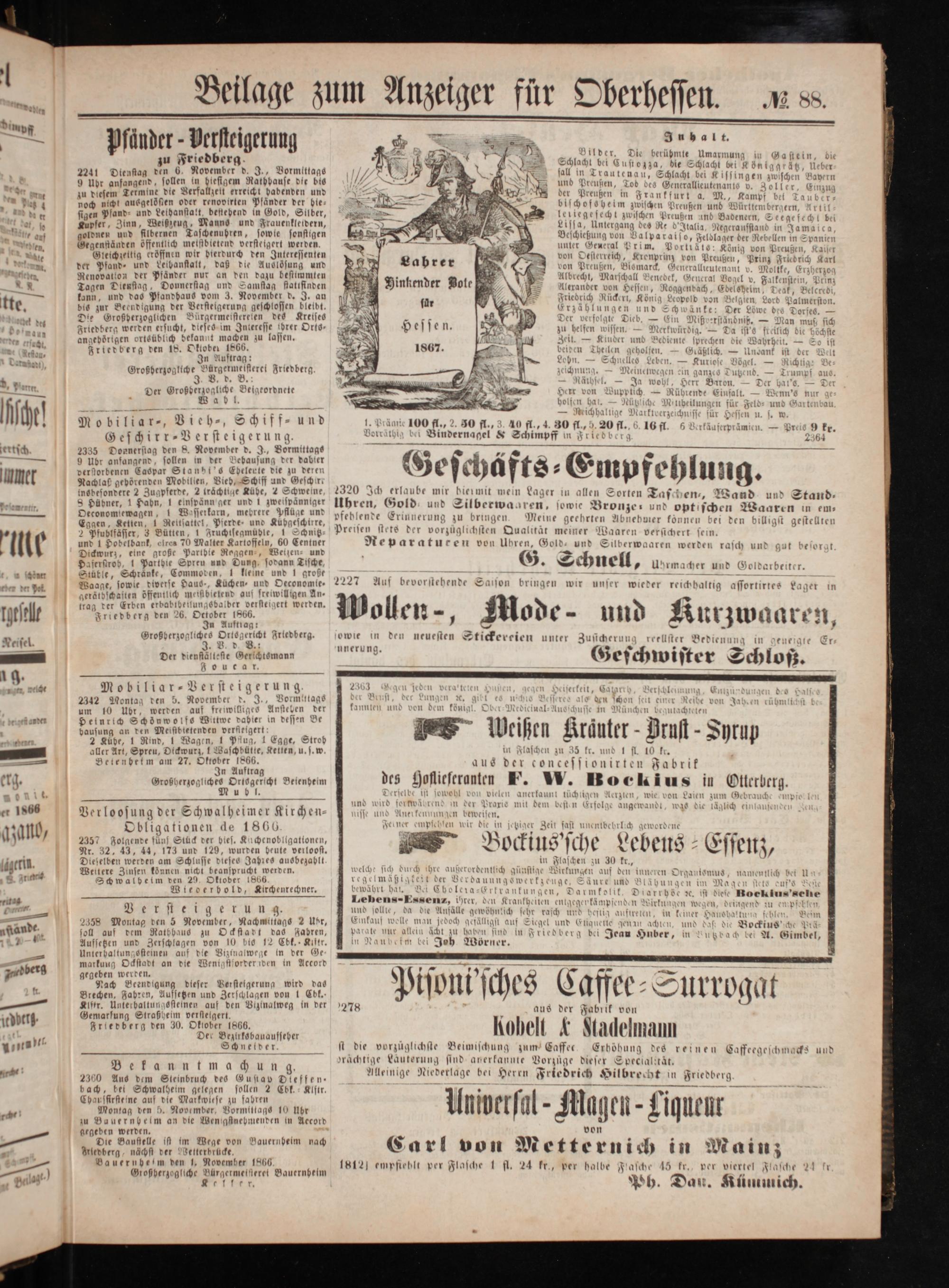 Anzeiger für Oberhessen. 1866-1868