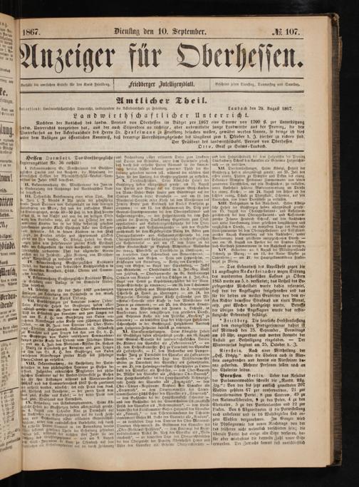 Anzeiger für Oberhessen. 1866-1868
