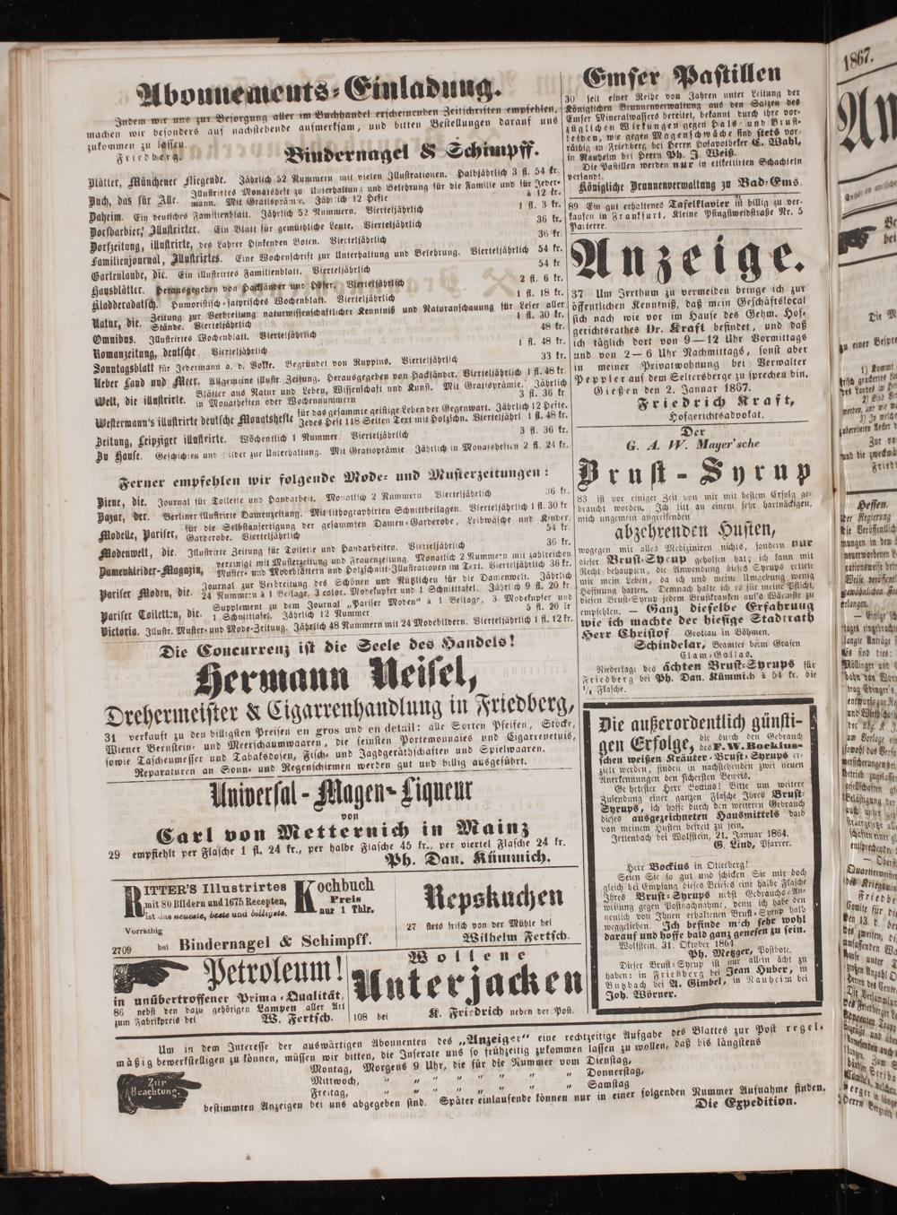 Anzeiger für Oberhessen. 1866-1868