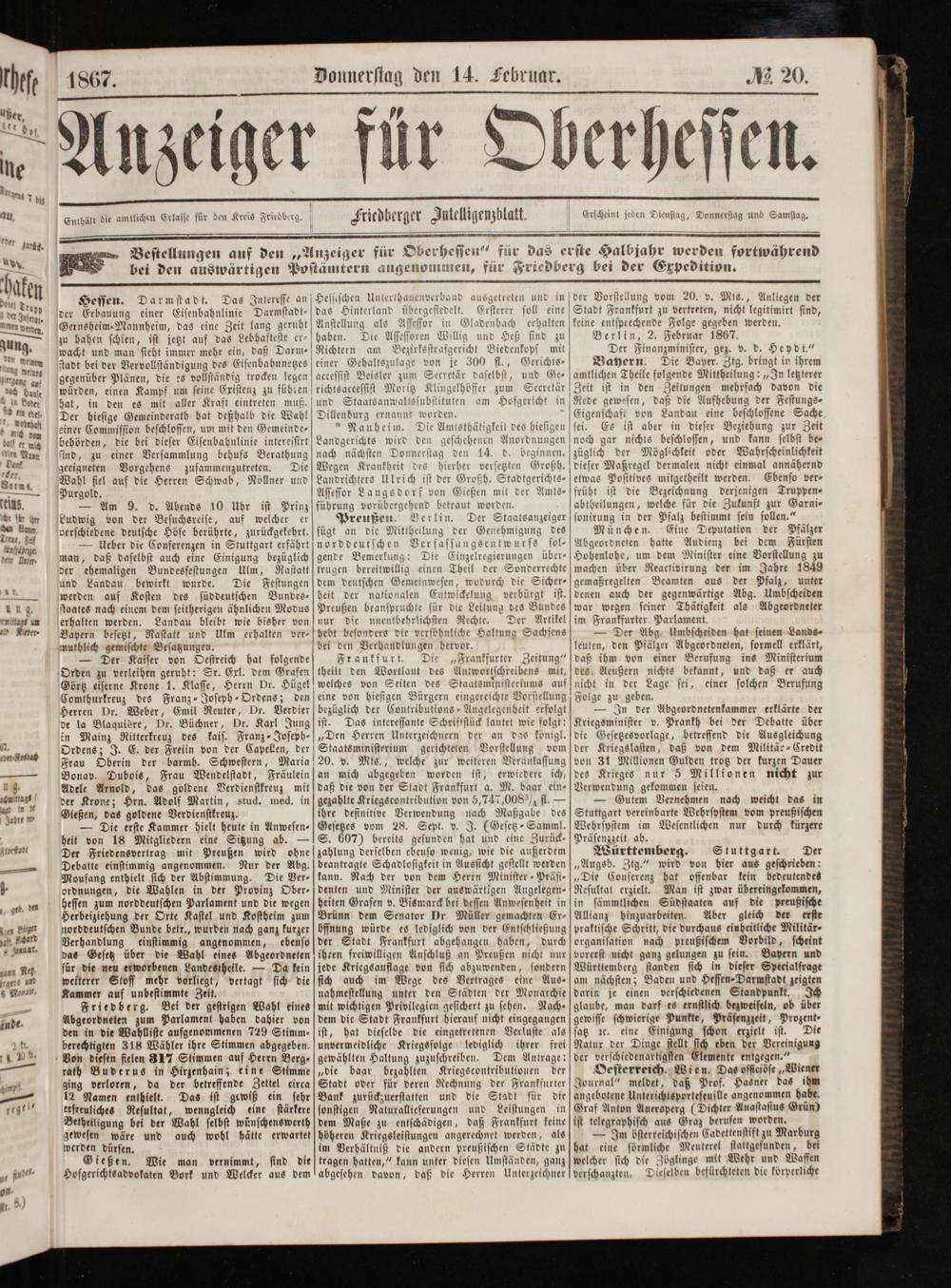 Anzeiger für Oberhessen. 1866-1868