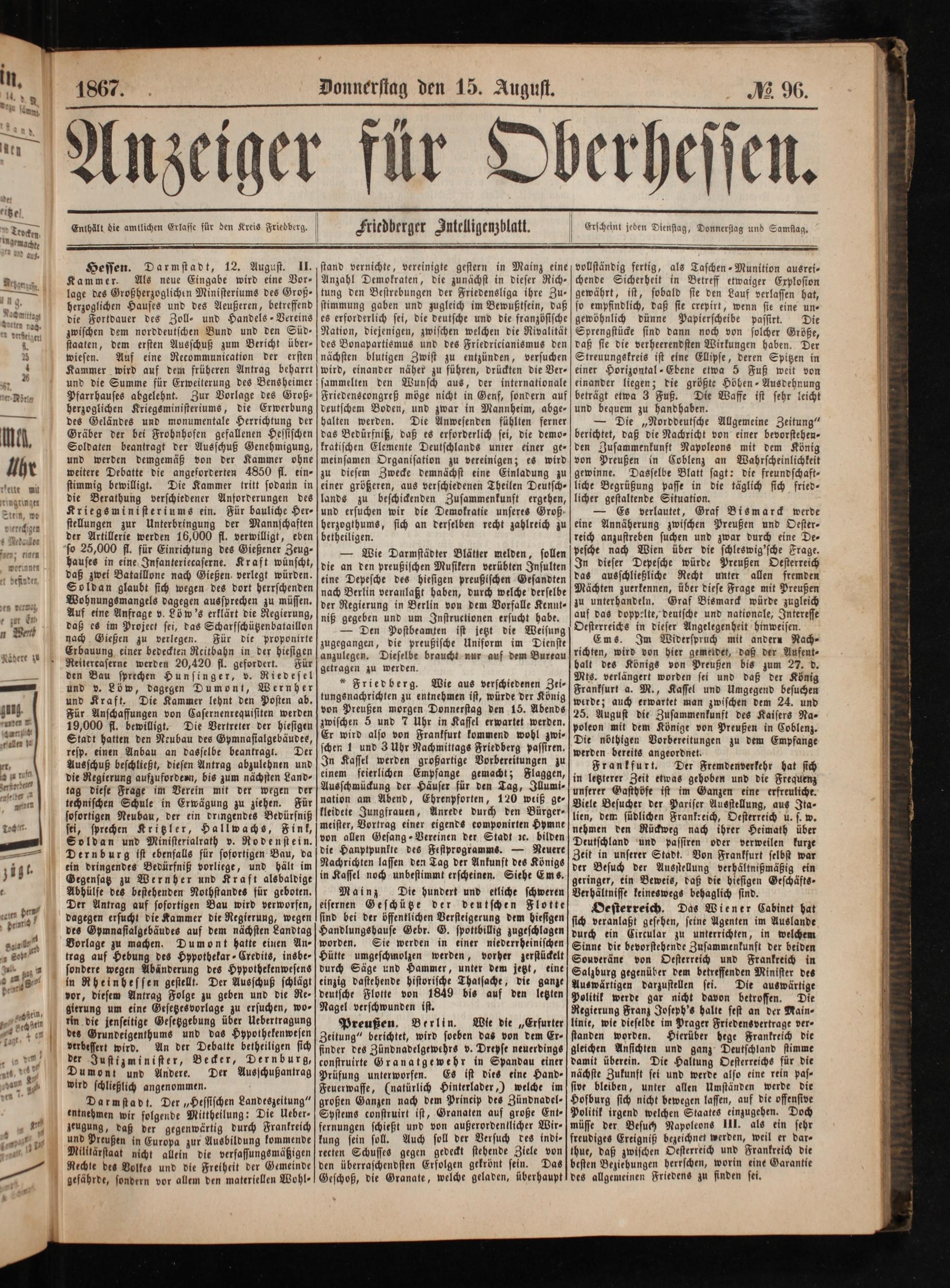 Anzeiger für Oberhessen. 1866-1868